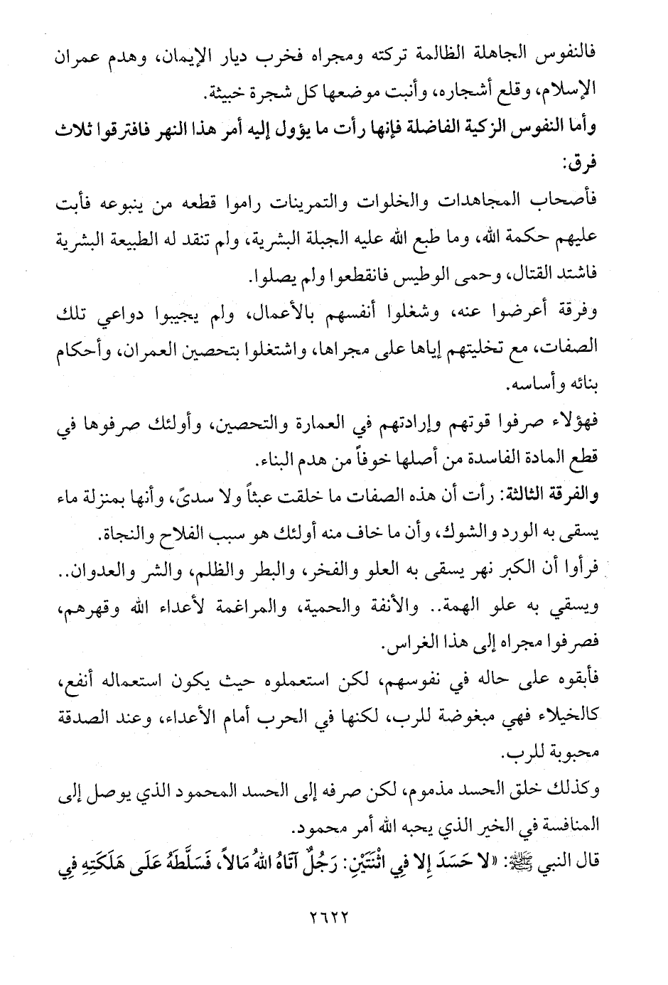 وأما النفوس الزكية الفاضلة فإنها رأت ما يؤول إليه أمر هذا النهر فافترقوا ثلاث فرق: