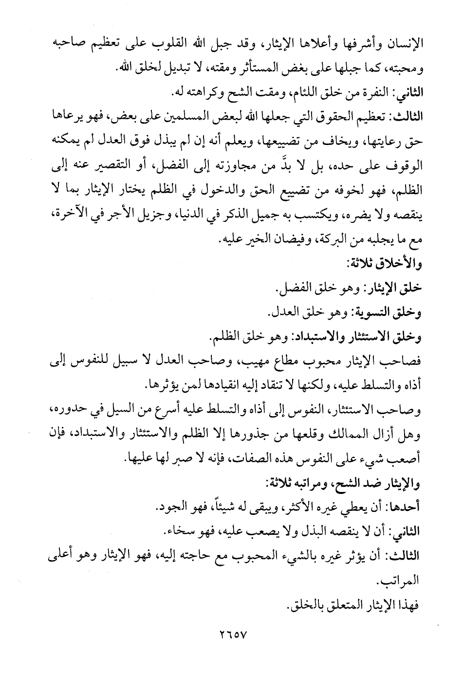 فصاحب الإيثار محبوب مطاع مهيب، وصاحب العدل لا سبيل للنفوس إلى أذاه والتسلط عليه، ولكنها لا تنقاد إليه انقيادها لمن يؤثرها.