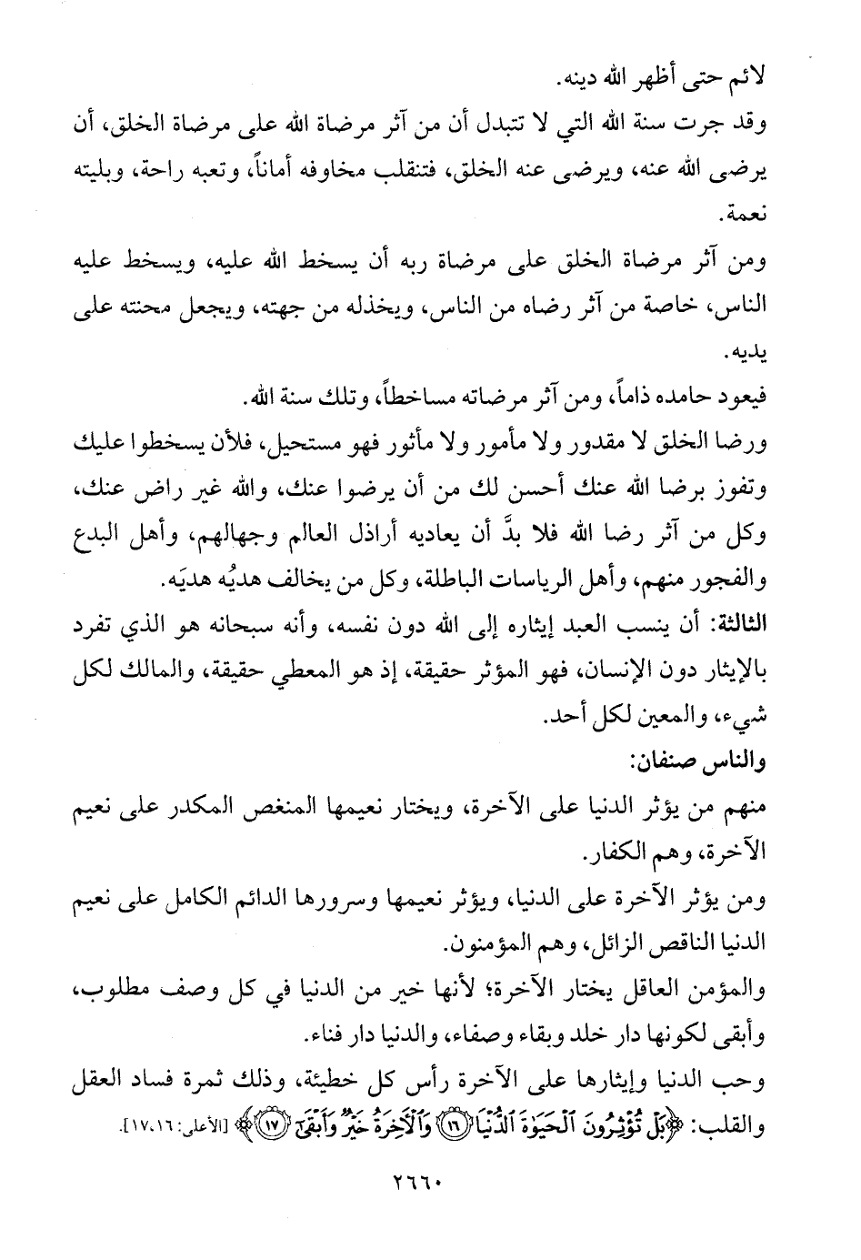 ورضا الخلق لا مقدور ولا مأمور ولا مأثور فهو مستحيل، فلأن يسخطوا عليك وتفوز برضا الله عنك أحسن لك من أن يرضوا عنك، والله غير راض عنك، وكل من آثر رضا الله فلا بدَّ أن يعاديه أراذل العالم وجهالهم، وأهل البدع والفجور منهم، وأهل الرياسات الباطلة، وكل من يخالف هديُه هديَه.