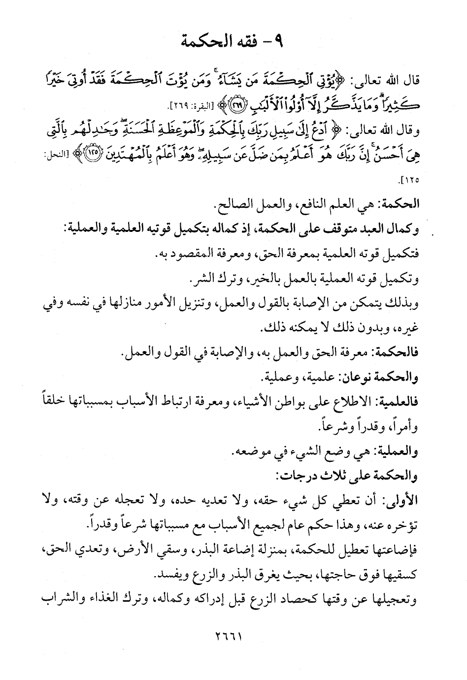 وكمال العبد متوقف على الحكمة، إذ كماله بتكميل قوتيه العلمية والعملية: