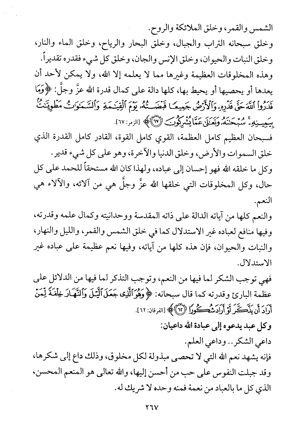وهذه المخلوقات العظيمة وغيرها مما لا يعلمه إلا الله، ولا يمكن لأحد أن يعدها أو يحصيها أو يحيط بها، كلها دالة على كمال قدرة الله عزَّ وجلَّ: {وَمَا قَدَرُوا اللَّهَ حَقَّ قَدْرِهِ وَالْأَرْضُ جَمِيعًا قَبْضَتُهُ يَوْمَ الْقِيَامَةِ وَالسَّمَاوَاتُ مَطْوِيَّاتٌ بِيَمِينِهِ سُبْحَانَهُ وَتَعَالَى عَمَّا يُشْرِكُونَ (67)} ... [الزمر: 67].