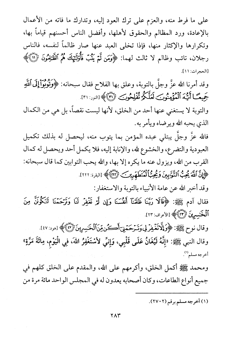 ومحمد (أكمل الخلق، وأكرمهم على الله، والمقدم على الخلق كلهم في جميع أنواع الطاعات، وكان أصحابه يعدون له في المجلس الواحد مائة مرة من