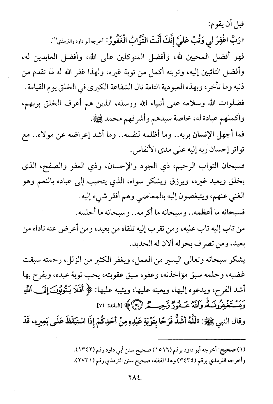 «رَبِّ اغْفِرْ لِي وَتُبْ عَلَيَّ إِنَّكَ أَنْتَ التَّوَّابُ الْغَفُورُ» أخرجه أبو داود والترمذي (¬1).
