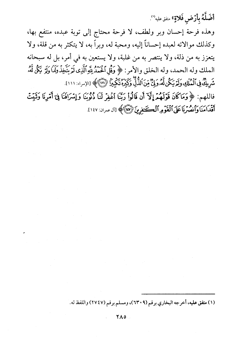وهذه فرحة إحسان وبر ولطف، لا فرحة محتاج إلى توبة عبده، منتفع بها، وكذلك موالاته لعبده إحساناً إليه، ومحبة له، وبراً به، لا يتكثر به من قلة، ولا يتعزز به من ذلة، ولا ينتصر به من غلبة، ولا يستعين به في أمر، بل له سبحانه الملك وله الحمد، وله الخلق والأمر: {وَقُلِ الْحَمْدُ لِلَّهِ الَّذِي لَمْ يَتَّخِذْ وَلَدًا وَلَمْ يَكُنْ لَهُ شَرِيكٌ فِي الْمُلْكِ وَلَمْ يَكُنْ لَهُ وَلِيٌّ مِنَ الذُّلِّ وَكَبِّرْهُ تَكْبِيرًا (111)} [الإسراء: 111].