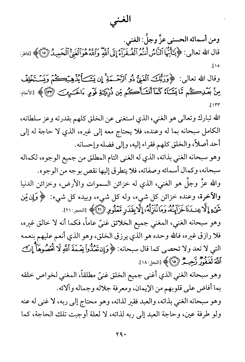 وهو سبحانه الغني بذاته، الذي له الغنى التام المطلق من جميع الوجوه، لكماله سبحانه، وكمال أسمائه وصفاته، فلا يتطرق إليها نقص بوجه من الوجوه.