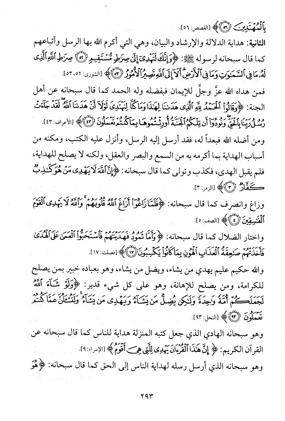 الثانية: هداية الدلالة والإرشاد والبيان، وهي التي أكرم الله بها الرسل وأتباعهم كما قال سبحانه لرسوله - صلى الله عليه وسلم -: {وَإِنَّكَ لَتَهْدِي إِلَى صِرَاطٍ مُسْتَقِيمٍ (52) صِرَاطِ اللَّهِ الَّذِي لَهُ مَا فِي السَّمَاوَاتِ وَمَا فِي الْأَرْضِ أَلَا إِلَى اللَّهِ تَصِيرُ الْأُمُورُ (53)} [الشورى: 52، 53].
