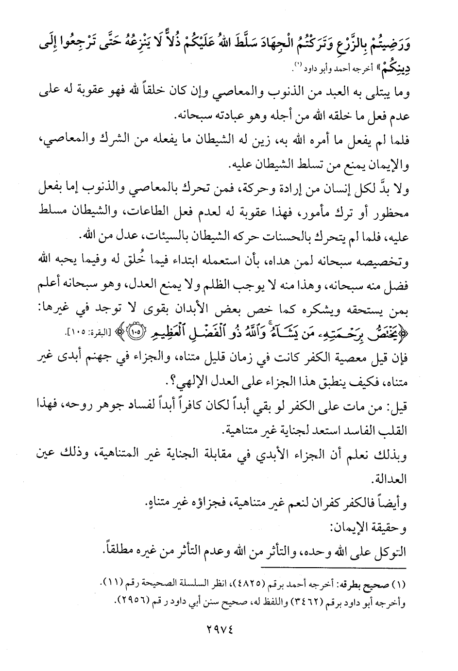 وَرَضِيتُمْ بِالزَّرْعِ وَتَرَكْتُمُ الْجِهَادَ سَلَّطَ اللهُ عَلَيْكُمْ ذُلاًّ لَا يَنْزِعُهُ حَتَّى تَرْجِعُوا إِلَى دِينِكُمْ» أخرجه أحمد وأبو داود (¬1).