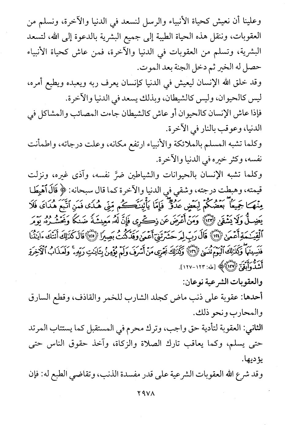 وكلما تشبه الإنسان بالحيوانات والشياطين ضرَّ نفسه، وآذى غيره، ونزلت قيمته، وهبطت درجته، وشقي في الدنيا والآخرة كما قال سبحانه: {قَالَ اهْبِطَا مِنْهَا جَمِيعًا بَعْضُكُمْ لِبَعْضٍ عَدُوٌّ فَإِمَّا يَأْتِيَنَّكُمْ مِنِّي هُدًى فَمَنِ اتَّبَعَ هُدَايَ فَلَا يَضِلُّ وَلَا يَشْقَى (123) وَمَنْ أَعْرَضَ عَنْ ذِكْرِي فَإِنَّ لَهُ مَعِيشَةً ضَنْكًا وَنَحْشُرُهُ يَوْمَ الْقِيَامَةِ أَعْمَى (124) قَالَ رَبِّ لِمَ حَشَرْتَنِي أَعْمَى وَقَدْ كُنْتُ بَصِيرًا (125) قَالَ كَذَلِكَ أَتَتْكَ آيَاتُنَا فَنَسِيتَهَا وَكَذَلِكَ الْيَوْمَ تُنْسَى (126) وَكَذَلِكَ نَجْزِي مَنْ أَسْرَفَ وَلَمْ يُؤْمِنْ بِآيَاتِ رَبِّهِ وَلَعَذَابُ الْآخِرَةِ أَشَدُّ وَأَبْقَى (127)} [طه: 123 - 127].