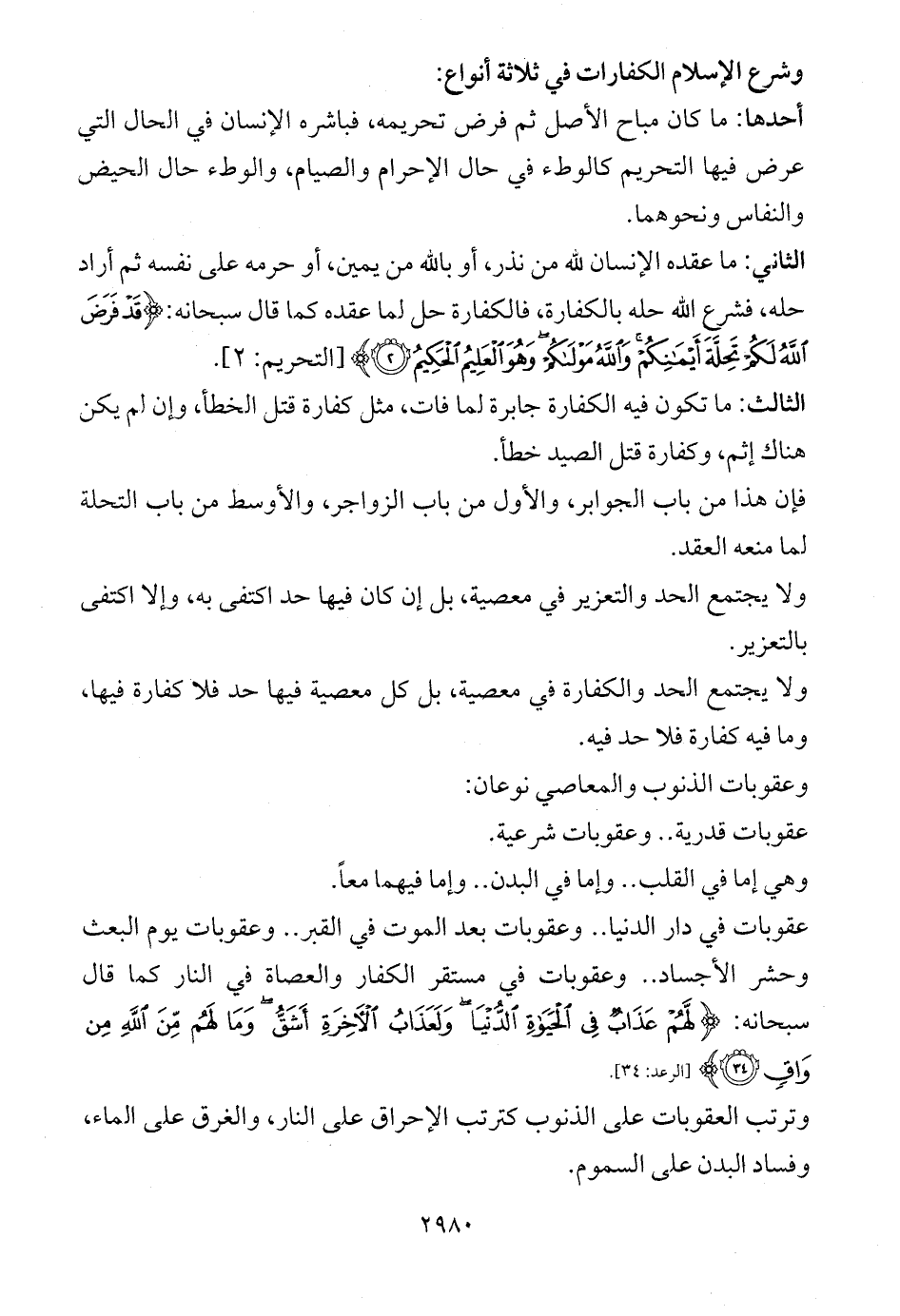 وشرع الإسلام الكفارات في ثلاثة أنواع: