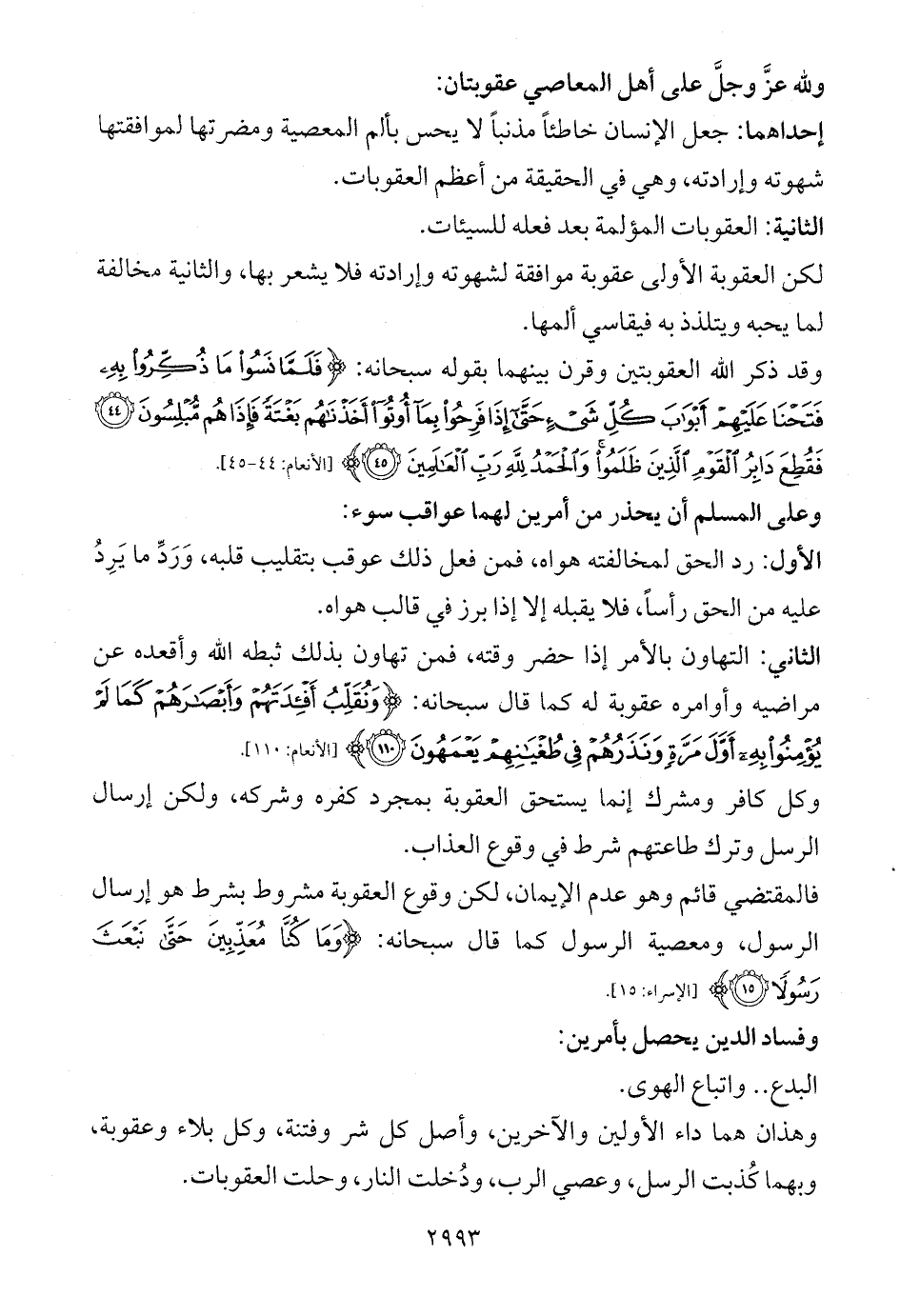 الثانية: العقوبات المؤلمة بعد فعله للسيئات.