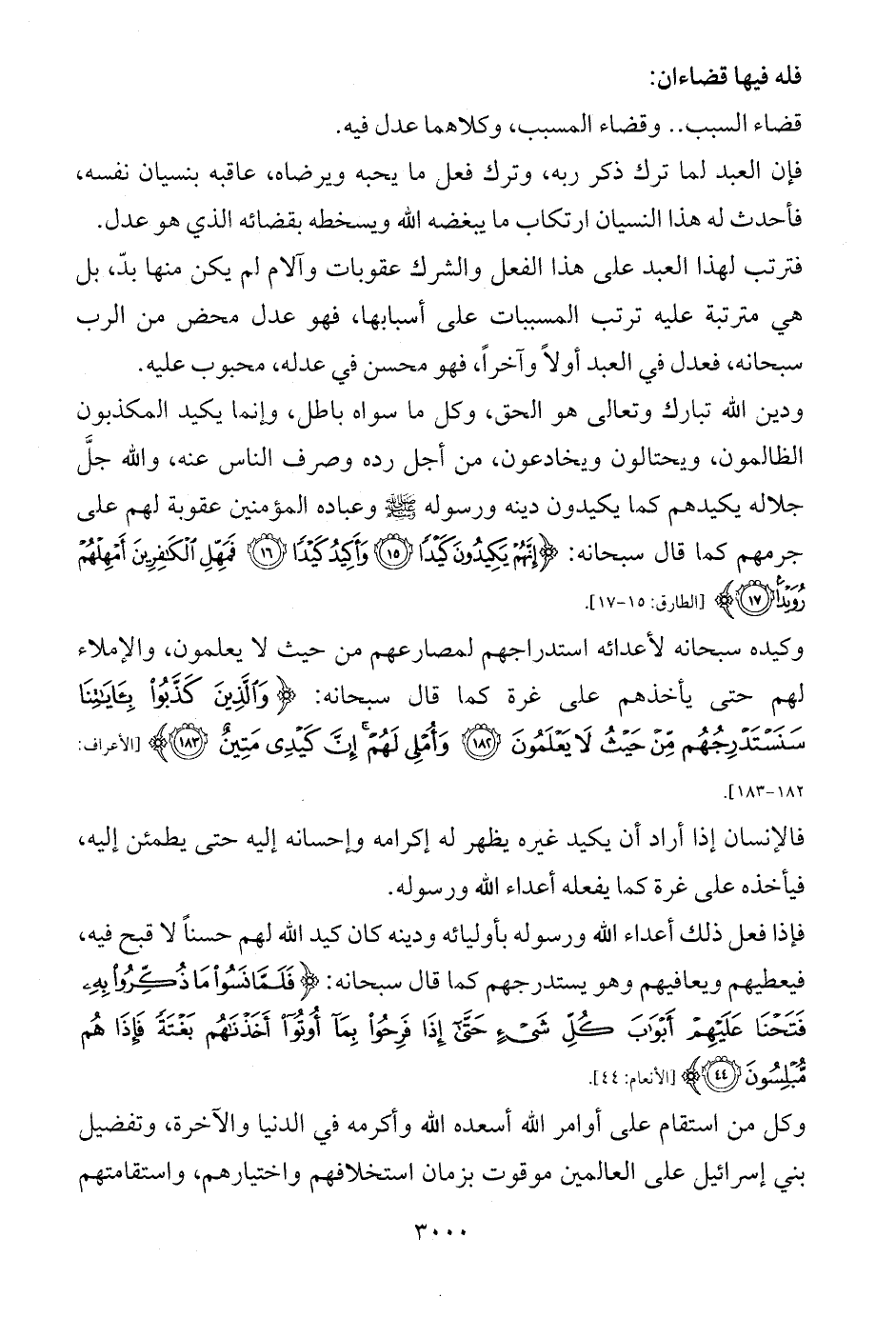 قضاء السبب .. وقضاء المسبب، وكلاهما عدل فيه.
