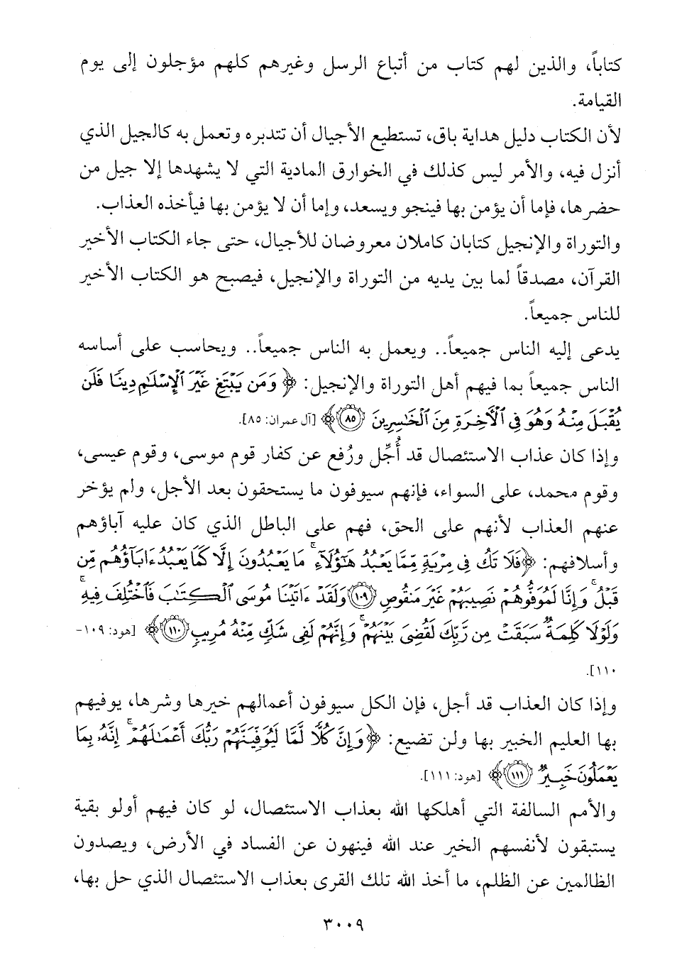 والتوراة والإنجيل كتابان كاملان معروضان للأجيال، حتى جاء الكتاب الأخير القرآن، مصدقاً لما بين يديه من التوراة والإنجيل، فيصبح هو الكتاب الأخير للناس جميعاً.