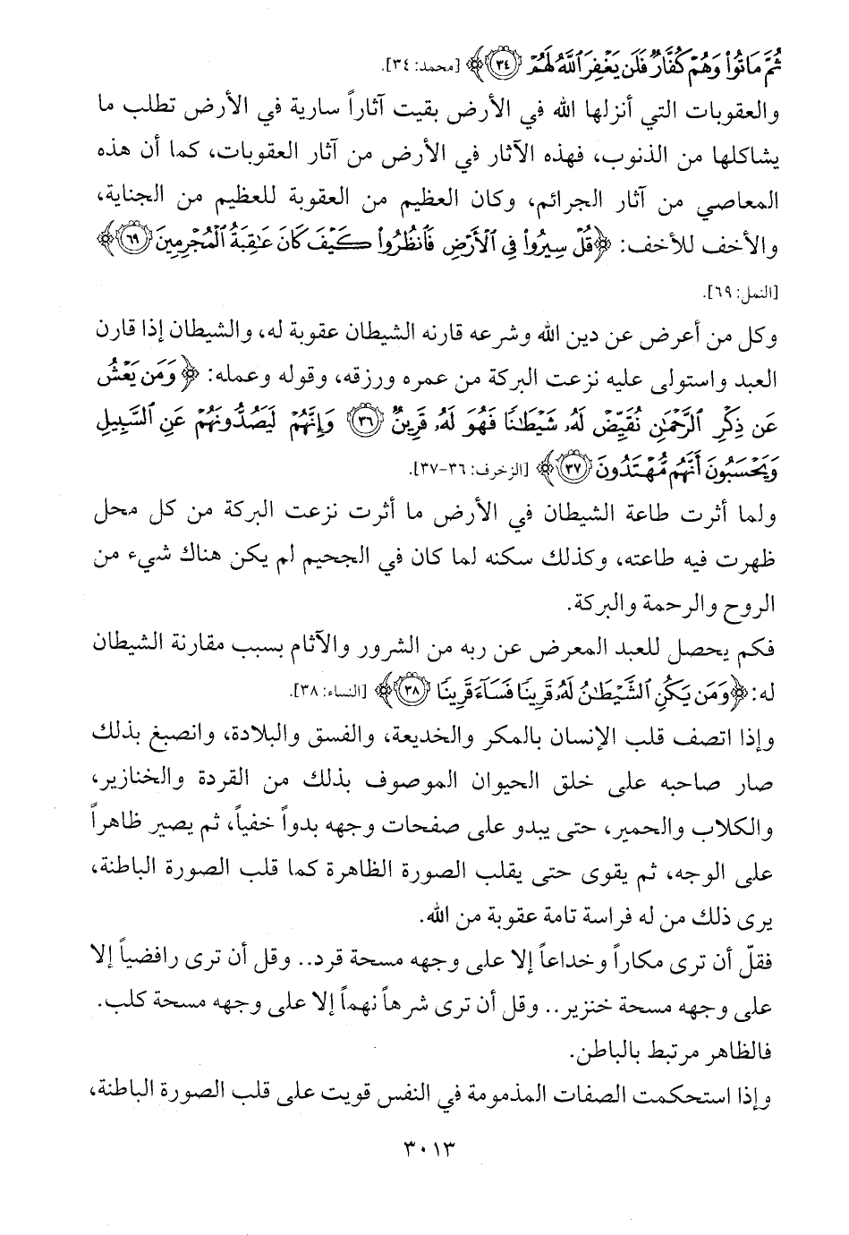 فكم يحصل للعبد المعرض عن ربه من الشرور والآثام بسبب مقارنة الشيطان له: {وَمَنْ يَكُنِ الشَّيْطَانُ لَهُ قَرِينًا فَسَاءَ قَرِينًا (38)} ... [النساء: 38].