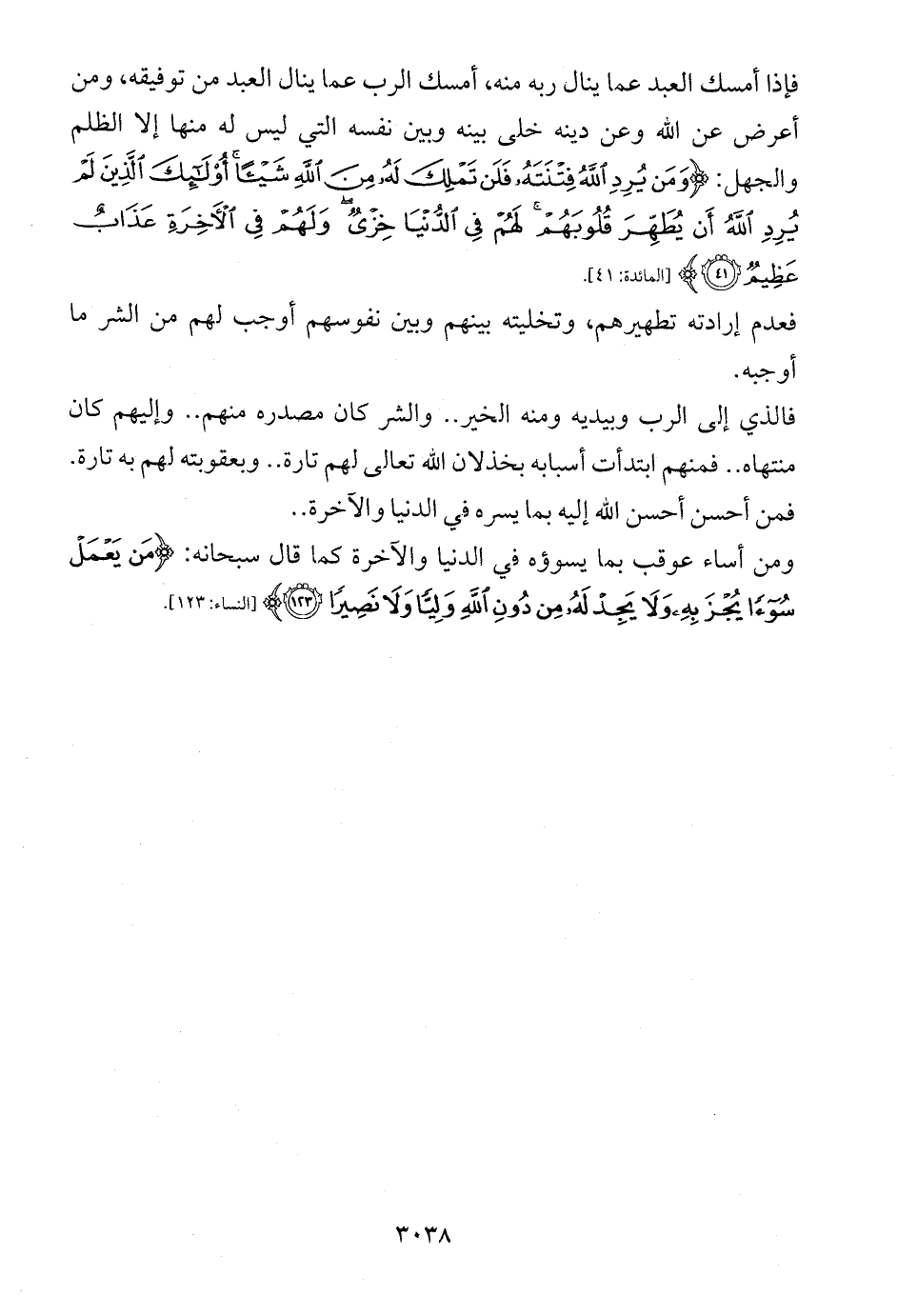 فإذا أمسك العبد عما ينال ربه منه، أمسك الرب عما ينال العبد من توفيقه، ومن أعرض عن الله وعن دينه خلى بينه وبين نفسه التي ليس له منها إلا الظلم والجهل: {وَمَنْ يُرِدِ اللَّهُ فِتْنَتَهُ فَلَنْ تَمْلِكَ لَهُ مِنَ اللَّهِ شَيْئًا أُولَئِكَ الَّذِينَ لَمْ يُرِدِ اللَّهُ أَنْ يُطَهِّرَ قُلُوبَهُمْ لَهُمْ فِي الدُّنْيَا خِزْيٌ وَلَهُمْ فِي الْآخِرَةِ عَذَابٌ عَظِيمٌ (41)} [المائدة: 41].
