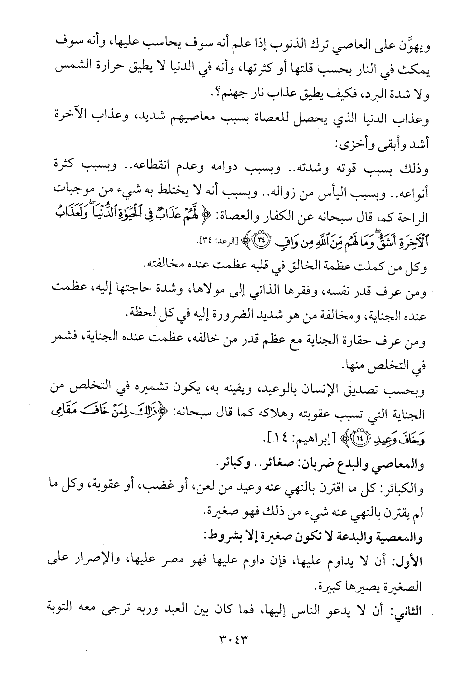 ومن عرف قدر نفسه، وفقرها الذاتي إلى مولاها، وشدة حاجتها إليه، عظمت عنده الجناية، ومخالفة من هو شديد الضرورة إليه في كل لحظة.