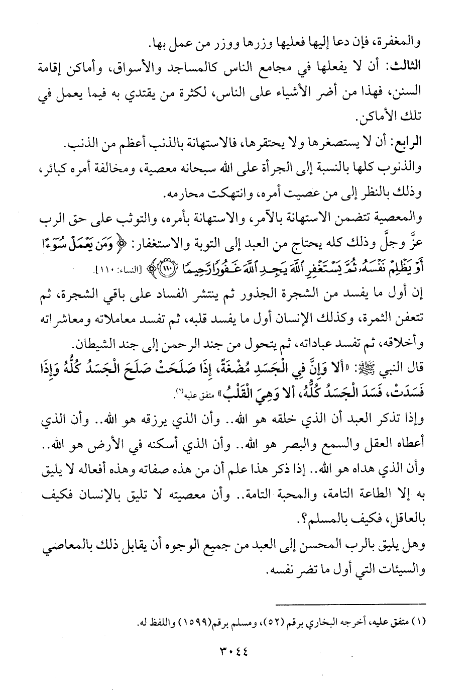 قال النبي - صلى الله عليه وسلم -: «ألا وَإِنَّ فِي الْجَسَدِ مُضْغَةً، إِذَا صَلَحَتْ صَلَحَ الْجَسَدُ كُلُّهُ وَإِذَا فَسَدَتْ، فَسَدَ الْجَسَدُ كُلُّهُ، ألا وَهِيَ الْقَلْبُ» متفق عليه (¬1).