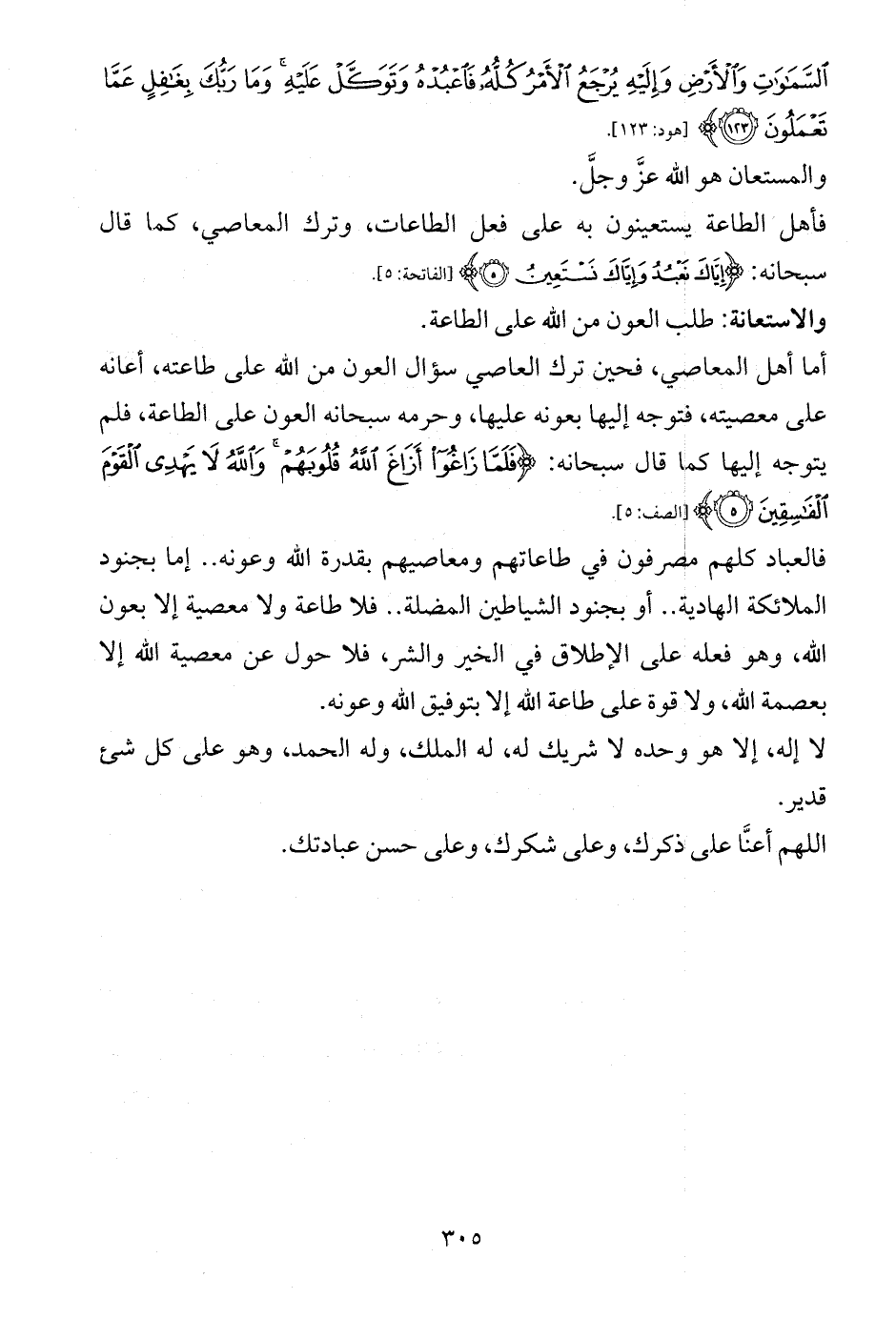 السَّمَاوَاتِ وَالْأَرْضِ وَإِلَيْهِ يُرْجَعُ الْأَمْرُ كُلُّهُ فَاعْبُدْهُ وَتَوَكَّلْ عَلَيْهِ وَمَا رَبُّكَ بِغَافِلٍ عَمَّا تَعْمَلُونَ (123)} ... [هود: 123].