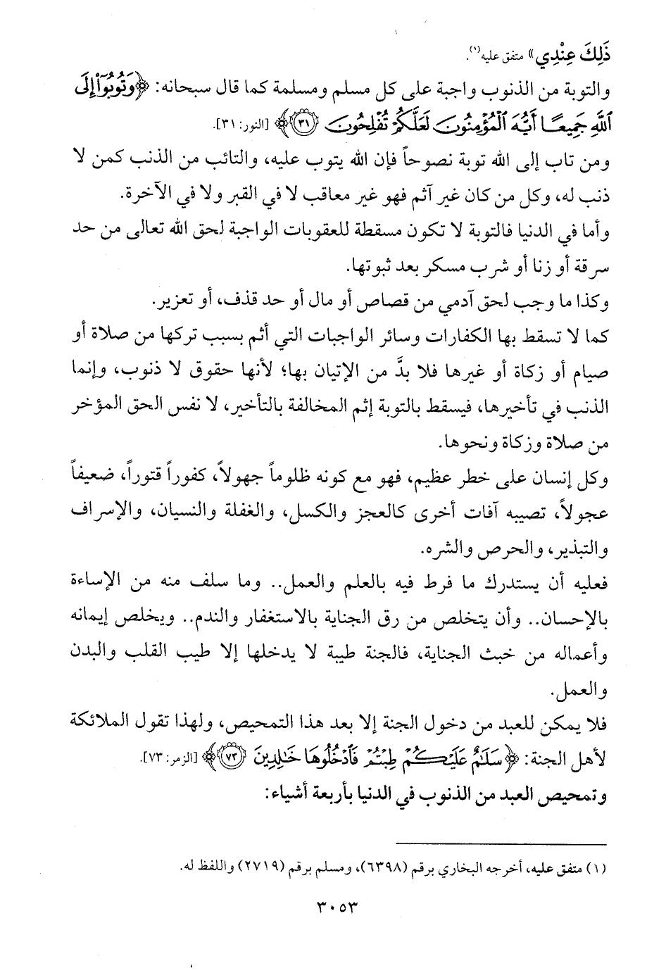 فعليه أن يستدرك ما فرط فيه بالعلم والعمل .. وما سلف منه من الإساءة بالإحسان .. وأن يتخلص من رق الجناية بالاستغفار والندم .. ويخلص إيمانه وأعماله من خبث الجناية، فالجنة طيبة لا يدخلها إلا طيب القلب والبدن والعمل.