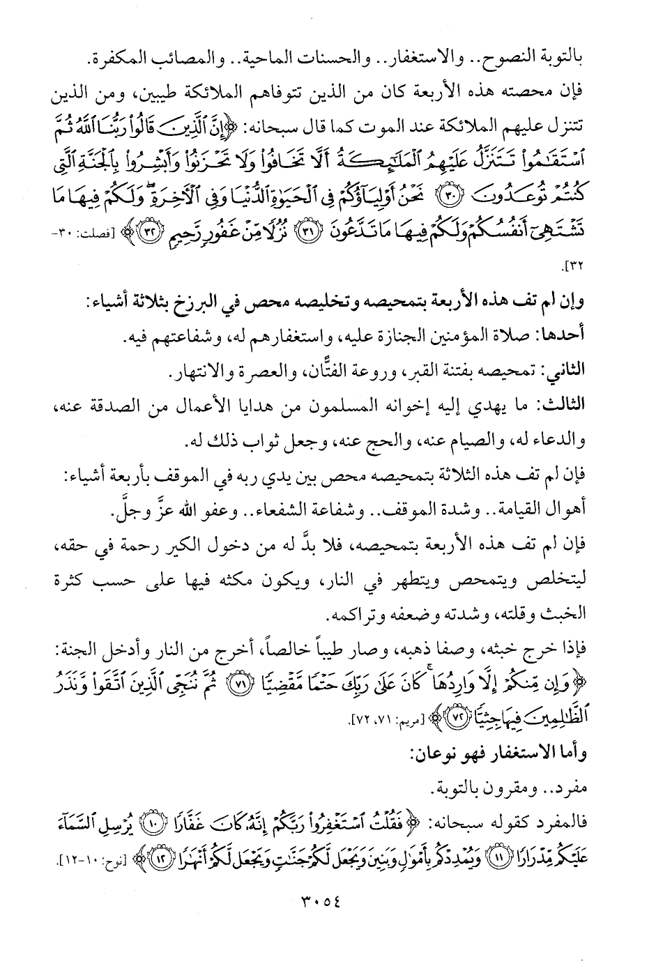 وإن لم تف هذه الأربعة بتمحيصه وتخليصه محص في البرزخ بثلاثة أشياء: