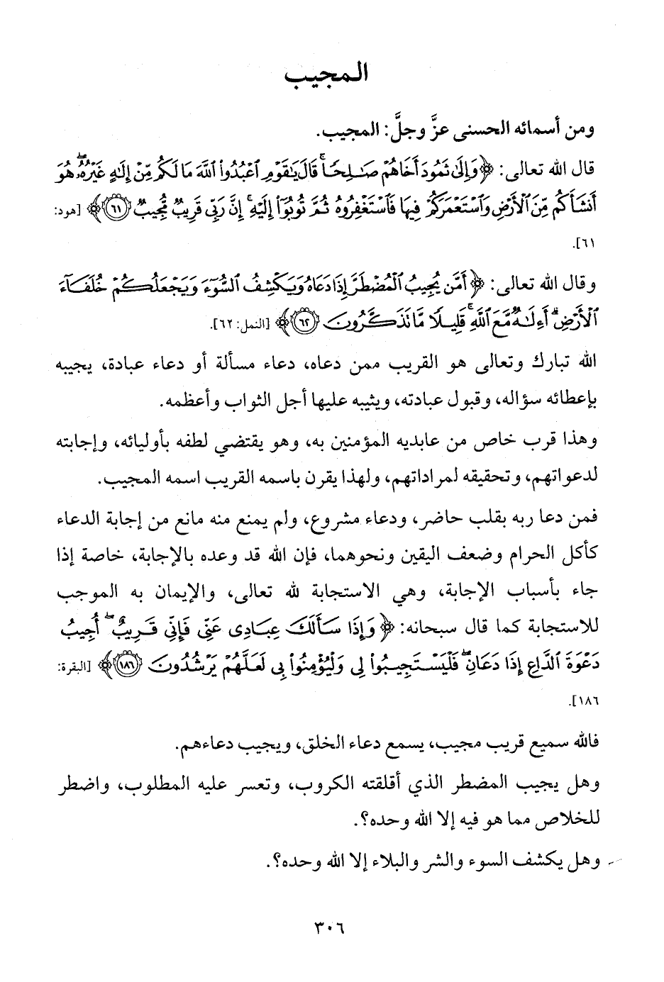 وقال الله تعالى: {أَمَّنْ يُجِيبُ الْمُضْطَرَّ إِذَا دَعَاهُ وَيَكْشِفُ السُّوءَ وَيَجْعَلُكُمْ خُلَفَاءَ الْأَرْضِ أَإِلَهٌ مَعَ اللَّهِ قَلِيلًا مَا تَذَكَّرُونَ (62)} [النمل: 62].