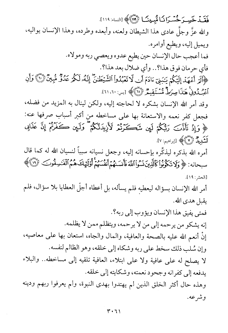 وقد أمر الله الإنسان بشكره لا لحاجته إليه، ولكن لينال به المزيد من فضله، فجعل كفر نعمه والاستعانة بها على مساخطه من أكبر أسباب صرفها عنه: {وَإِذْ تَأَذَّنَ رَبُّكُمْ لَئِنْ شَكَرْتُمْ لَأَزِيدَنَّكُمْ وَلَئِنْ كَفَرْتُمْ إِنَّ عَذَابِي لَشَدِيدٌ (7)} [إبراهيم: 7].
