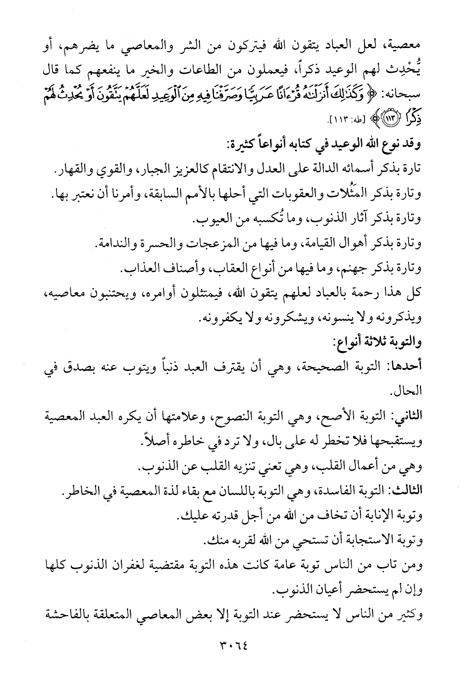 والتوبة ثلاثة أنواع: