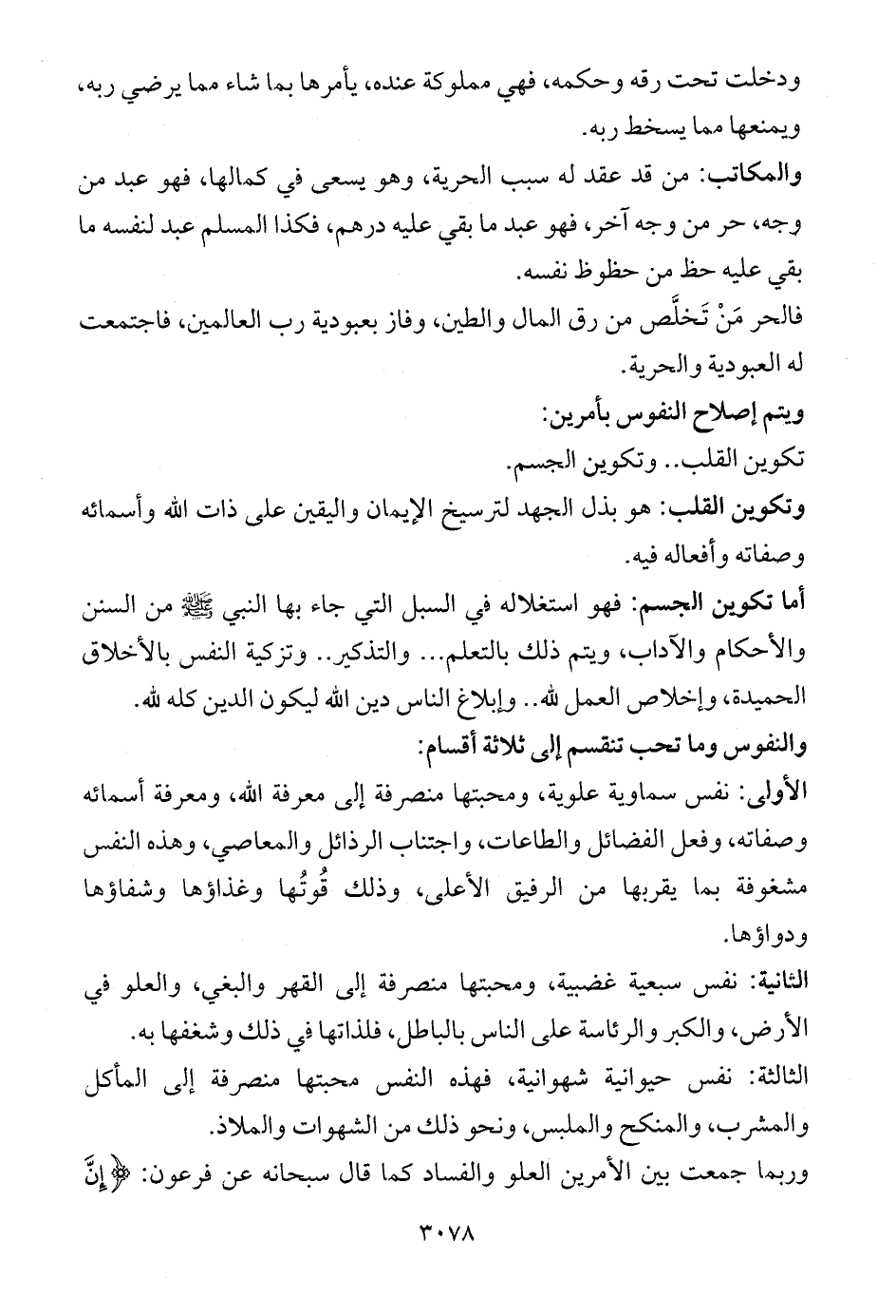 والنفوس وما تحب تنقسم إلى ثلاثة أقسام: