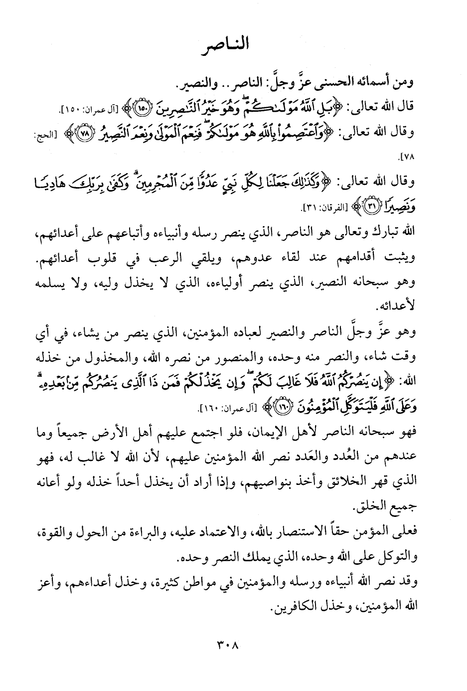 وهو سبحانه النصير، الذي ينصر أولياءه، الذي لا يخذل وليه، ولا يسلمه لأعدائه.