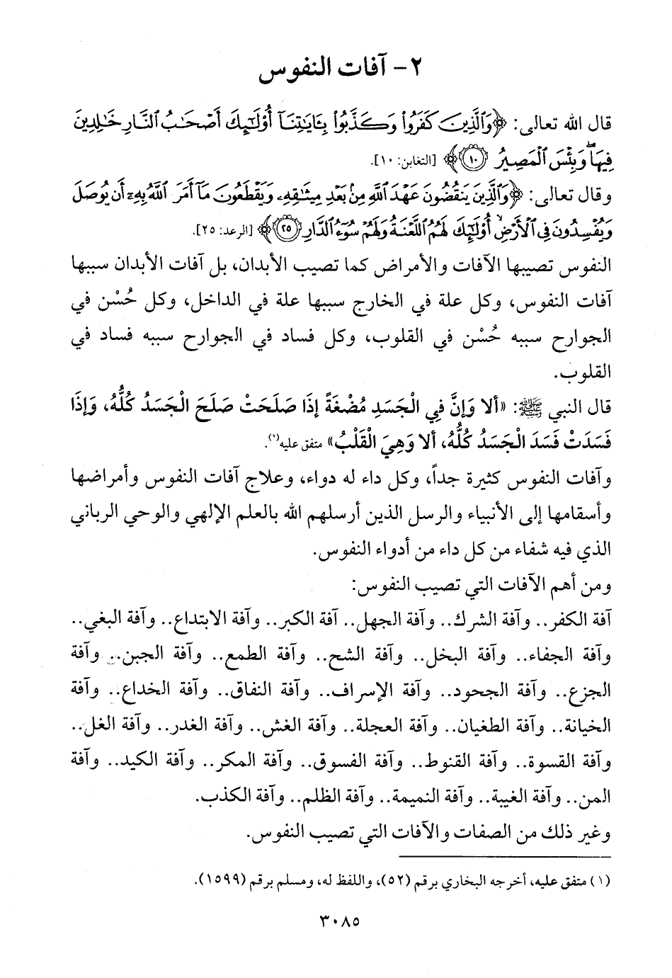وغير ذلك من الصفات والآفات التي تصيب النفوس.