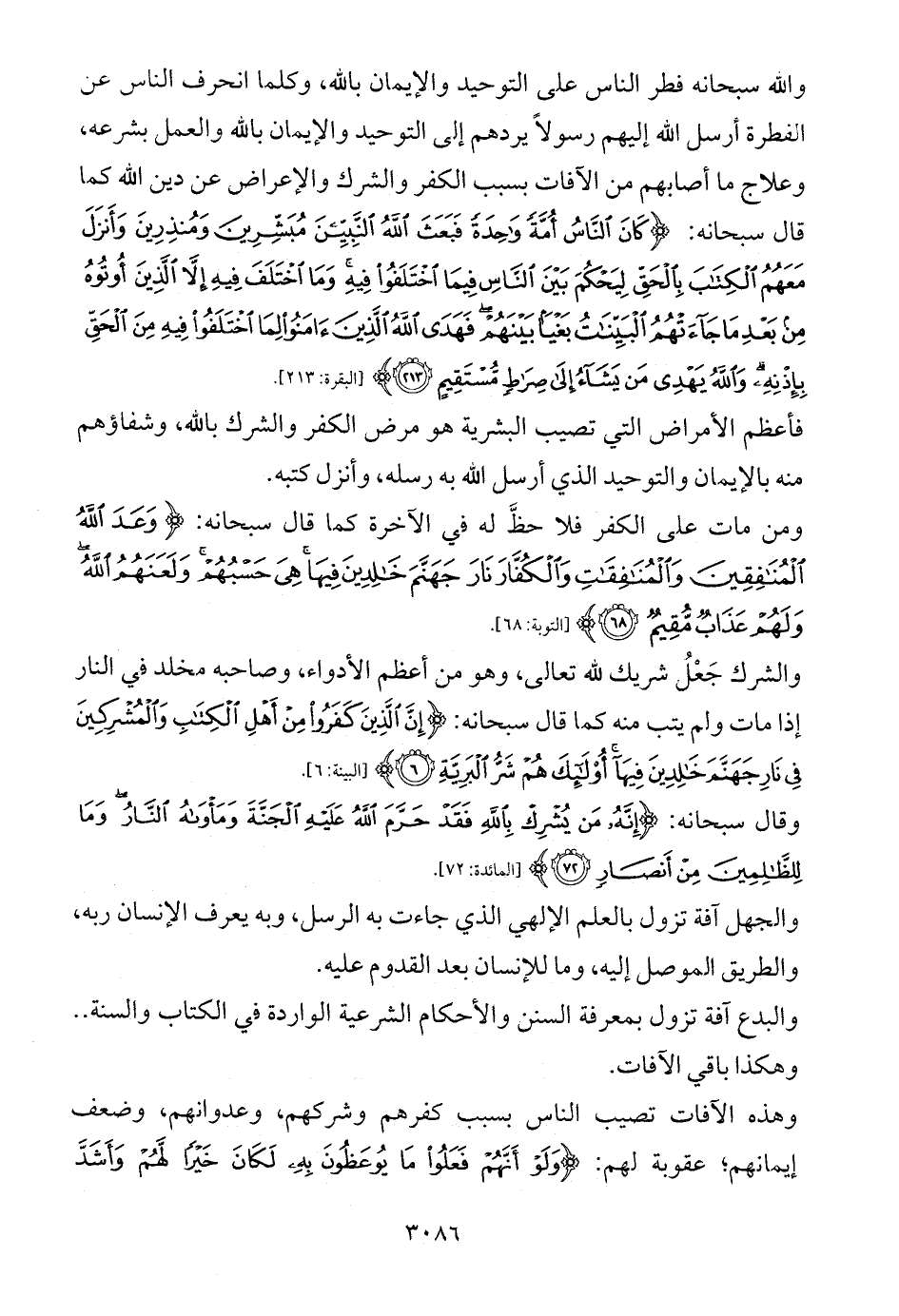 فأعظم الأمراض التي تصيب البشرية هو مرض الكفر والشرك بالله، وشفاؤهم منه بالإيمان والتوحيد الذي أرسل الله به رسله، وأنزل كتبه.