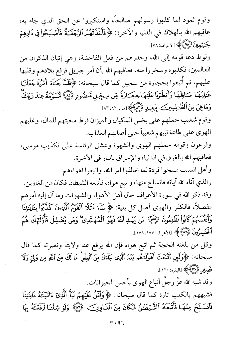 وقد ذكر الله في سورة الأعراف حال أهل الأهواء والشهوات وما آل إليه أمرهم مفصلاً، فالكفر والهوى أصل كل بلية: {سَاءَ مَثَلًا الْقَوْمُ الَّذِينَ كَذَّبُوا بِآيَاتِنَا وَأَنْفُسَهُمْ كَانُوا يَظْلِمُونَ (177) مَنْ يَهْدِ اللَّهُ فَهُوَ الْمُهْتَدِي وَمَنْ يُضْلِلْ فَأُولَئِكَ هُمُ الْخَاسِرُونَ (178)} ... [الأعراف: 177، 178].