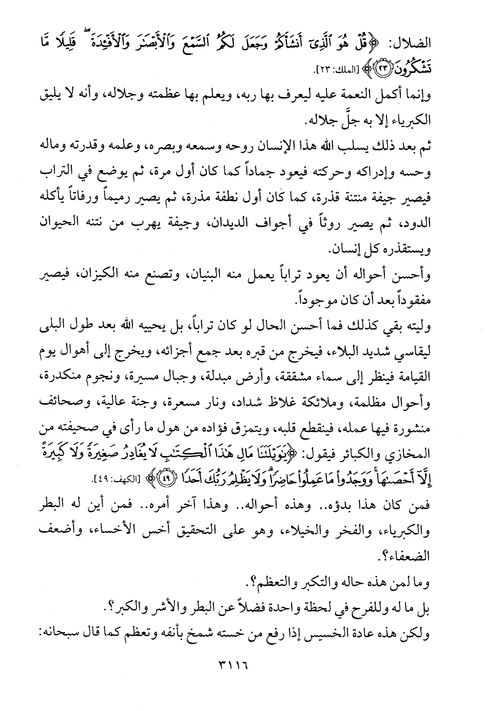 فمن كان هذا بدؤه .. وهذه أحواله .. وهذا آخر أمره .. فمن أين له البطر والكبرياء، والفخر والخيلاء، وهو على التحقيق أخس الأخساء، وأضعف الضعفاء؟.