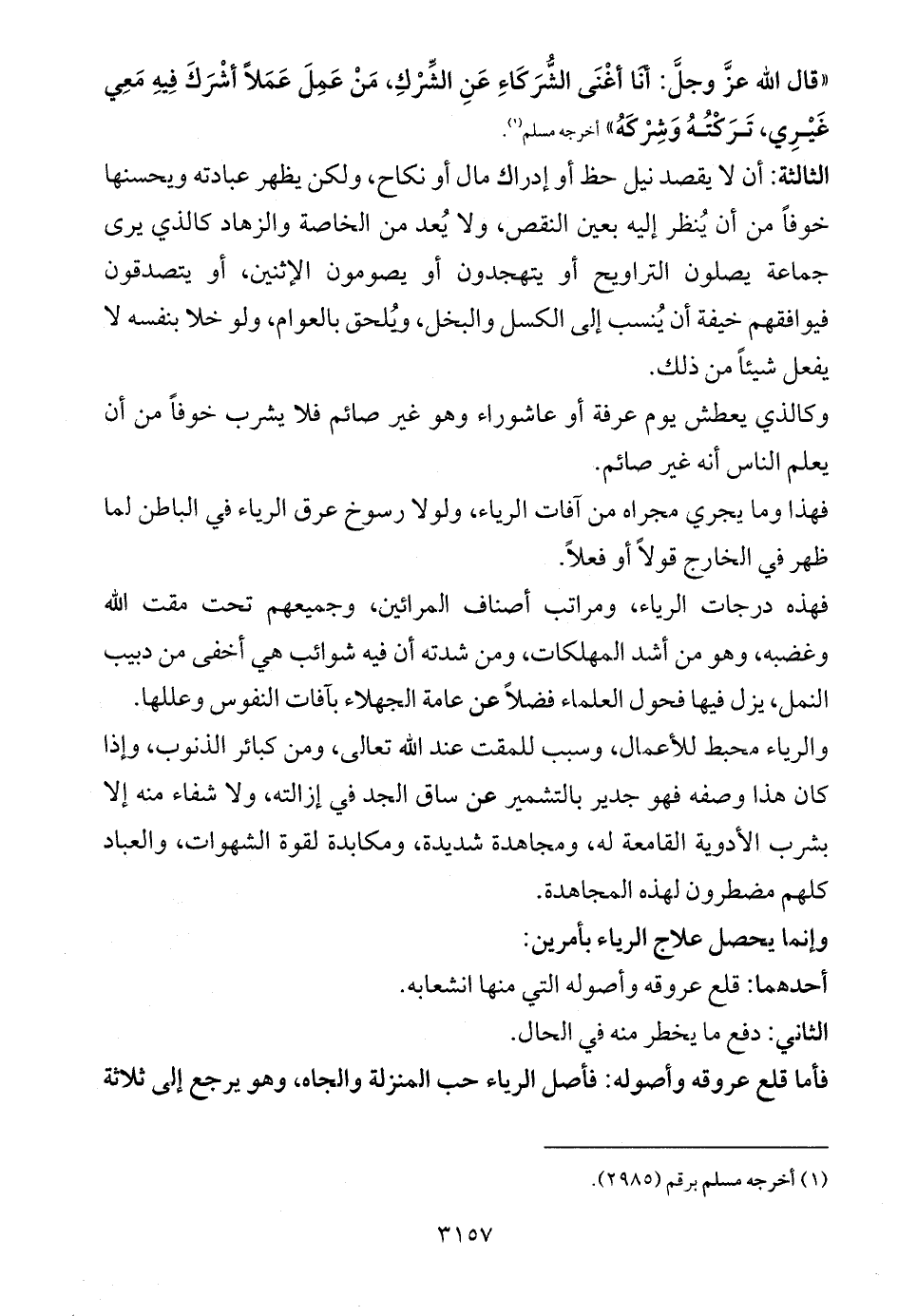 «قال الله عزَّ وجلَّ: أنَا أغْنَى الشُّرَكَاءِ عَنِ الشِّرْكِ، مَنْ عَمِلَ عَمَلاً أشْرَكَ فِيهِ مَعِي غَيْرِي، تَرَكْتُهُ وَشِرْكَهُ» أخرجه مسلم (¬1).
