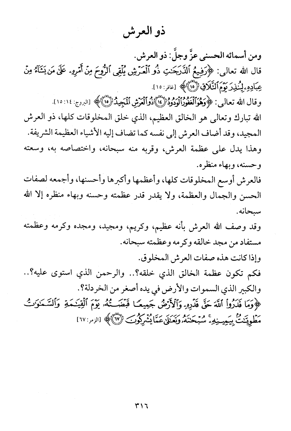 ومن أسمائه الحسنى عزَّ وجلَّ: ذو العرش.