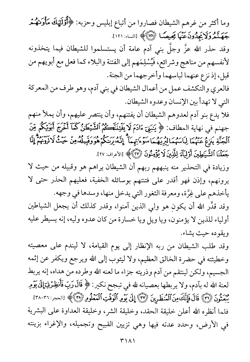 فلا يدع بنو آدم لعدوهم الشيطان أن يفتنهم، وأن ينتصر عليهم، وأن يملأ منهم جهنم في نهاية المطاف: {يَابَنِي آدَمَ لَا يَفْتِنَنَّكُمُ الشَّيْطَانُ كَمَا أَخْرَجَ أَبَوَيْكُمْ مِنَ الْجَنَّةِ يَنْزِعُ عَنْهُمَا لِبَاسَهُمَا لِيُرِيَهُمَا سَوْآتِهِمَا إِنَّهُ يَرَاكُمْ هُوَ وَقَبِيلُهُ مِنْ حَيْثُ لَا تَرَوْنَهُمْ إِنَّا جَعَلْنَا الشَّيَاطِينَ أَوْلِيَاءَ لِلَّذِينَ لَا يُؤْمِنُونَ (27)} [الأعراف: 27].