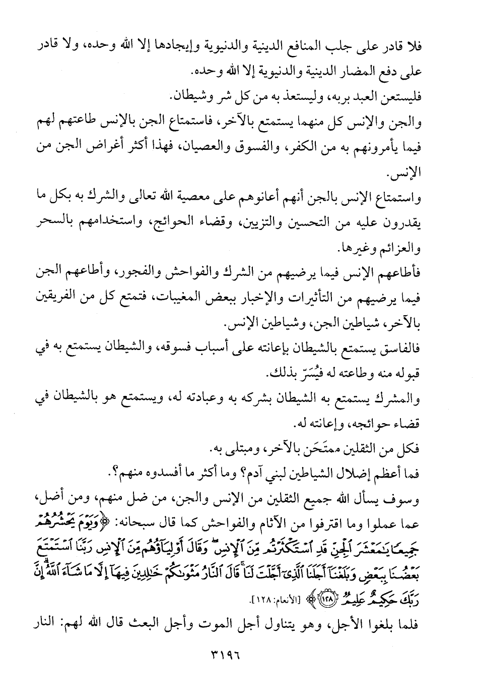 وسوف يسأل الله جميع الثقلين من الإنس والجن، من ضل منهم، ومن أضل، عما عملوا وما اقترفوا من الآثام والفواحش كما قال سبحانه: {وَيَوْمَ يَحْشُرُهُمْ جَمِيعًا يَامَعْشَرَ الْجِنِّ قَدِ اسْتَكْثَرْتُمْ مِنَ الْإِنْسِ وَقَالَ أَوْلِيَاؤُهُمْ مِنَ الْإِنْسِ رَبَّنَا اسْتَمْتَعَ بَعْضُنَا بِبَعْضٍ وَبَلَغْنَا أَجَلَنَا الَّذِي أَجَّلْتَ لَنَا قَالَ النَّارُ مَثْوَاكُمْ خَالِدِينَ فِيهَا إِلَّا مَا شَاءَ اللَّهُ إِنَّ رَبَّكَ حَكِيمٌ عَلِيمٌ (128)} ... [الأنعام: 128].