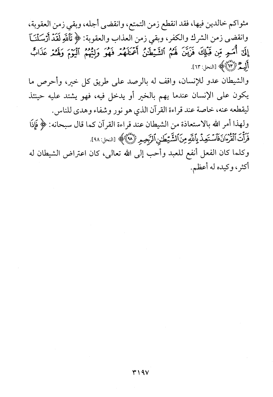 ولهذا أمر الله بالاستعاذة من الشيطان عند قراءة القرآن كما قال سبحانه: {فَإِذَا قَرَأْتَ الْقُرْآنَ فَاسْتَعِذْ بِاللَّهِ مِنَ الشَّيْطَانِ الرَّجِيمِ (98)} ... [النحل: 98].