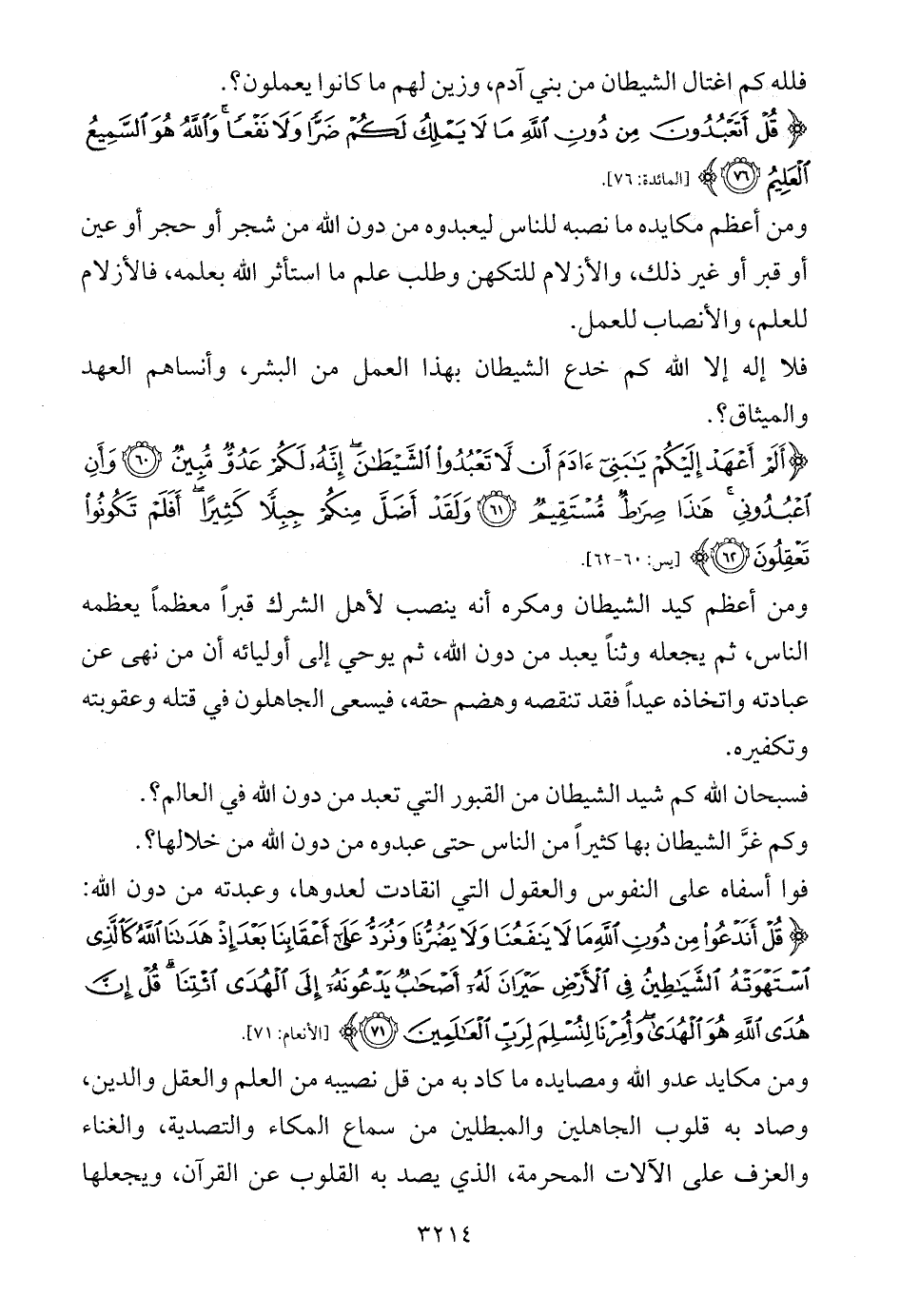 فوا أسفاه على النفوس والعقول التي انقادت لعدوها، وعبدته من دون الله: {قُلْ أَنَدْعُو مِنْ دُونِ اللَّهِ مَا لَا يَنْفَعُنَا وَلَا يَضُرُّنَا وَنُرَدُّ عَلَى أَعْقَابِنَا بَعْدَ إِذْ هَدَانَا اللَّهُ كَالَّذِي اسْتَهْوَتْهُ الشَّيَاطِينُ فِي الْأَرْضِ حَيْرَانَ لَهُ أَصْحَابٌ يَدْعُونَهُ إِلَى الْهُدَى ائْتِنَا قُلْ إِنَّ هُدَى اللَّهِ هُوَ الْهُدَى وَأُمِرْنَا لِنُسْلِمَ لِرَبِّ الْعَالَمِينَ (71)} ... [الأنعام: 71].