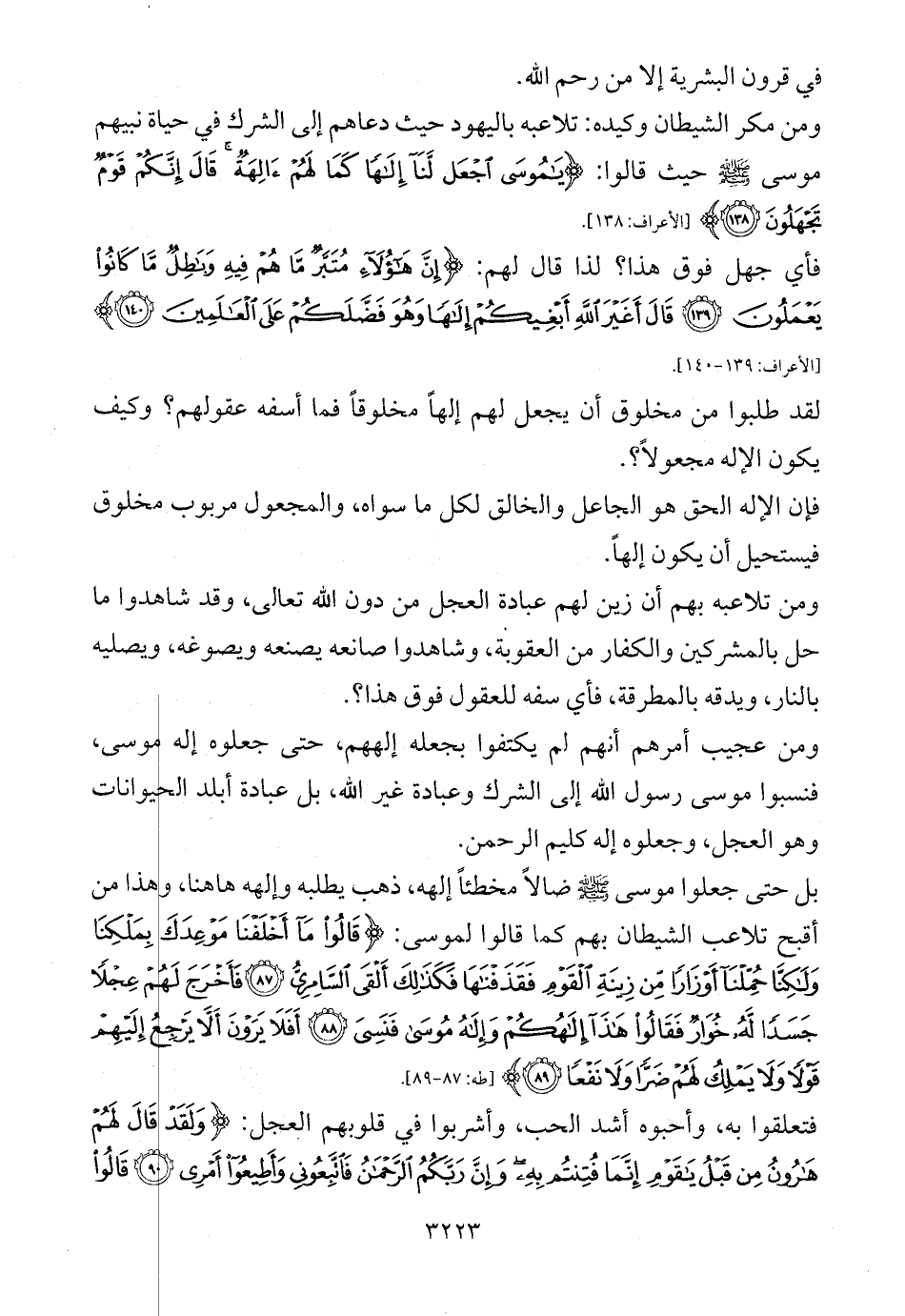 ومن تلاعبه بهم أن زين لهم عبادة العجل من دون الله تعالى، وقد شاهدوا ما حل بالمشركين والكفار من العقوبة، وشاهدوا صانعه يصنعه ويصوغه، ويصليه بالنار، ويدقه بالمطرقة، فأي سفه للعقول فوق هذا؟.
