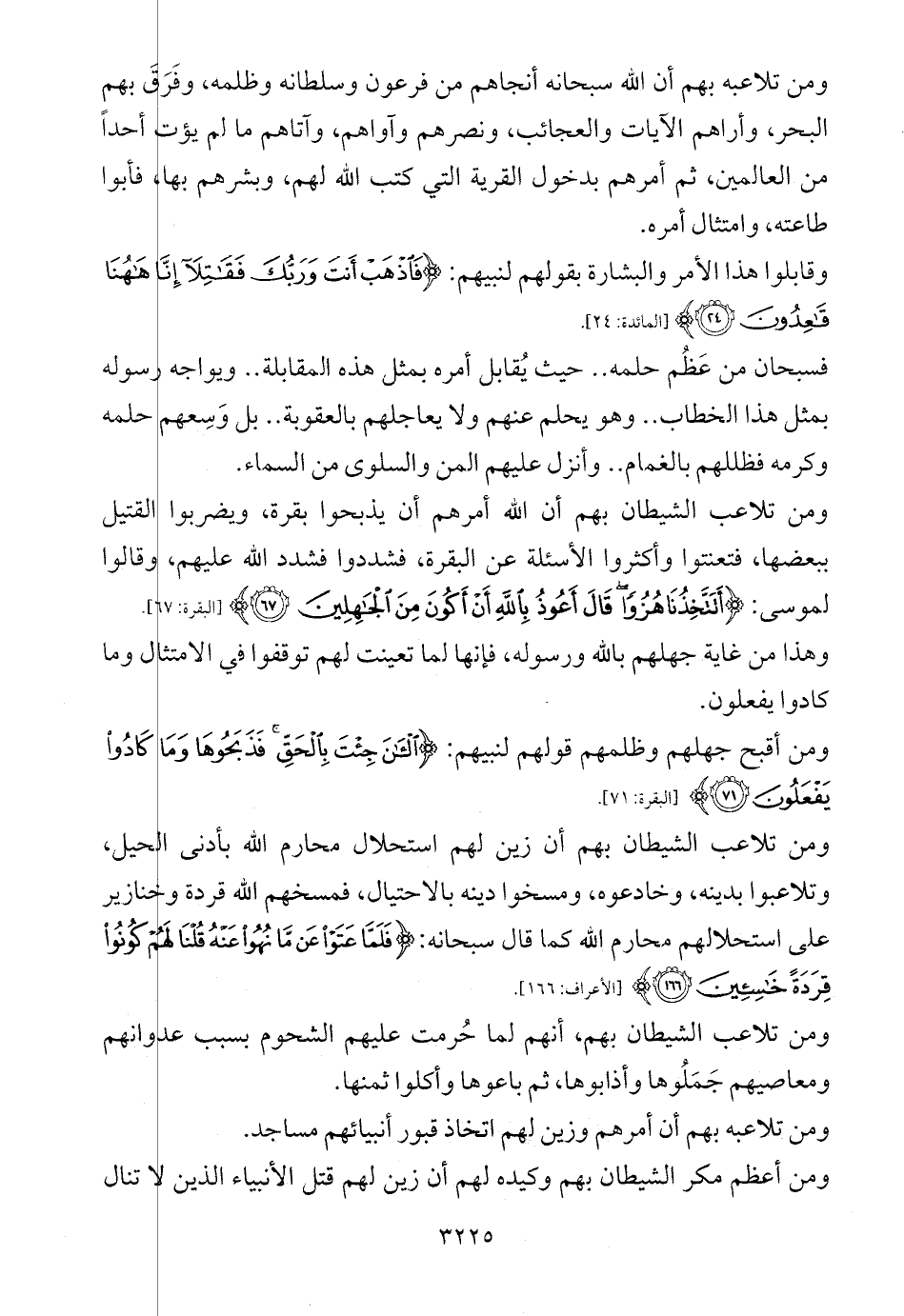 ومن تلاعب الشيطان بهم أن الله أمرهم أن يذبحوا بقرة، ويضربوا القتيل ببعضها، فتعنتوا وأكثروا الأسئلة عن البقرة، فشددوا فشدد الله عليهم، وقالوا لموسى: {أَتَتَّخِذُنَا هُزُوًا قَالَ أَعُوذُ بِاللَّهِ أَنْ أَكُونَ مِنَ الْجَاهِلِينَ (67)} [البقرة: 67].