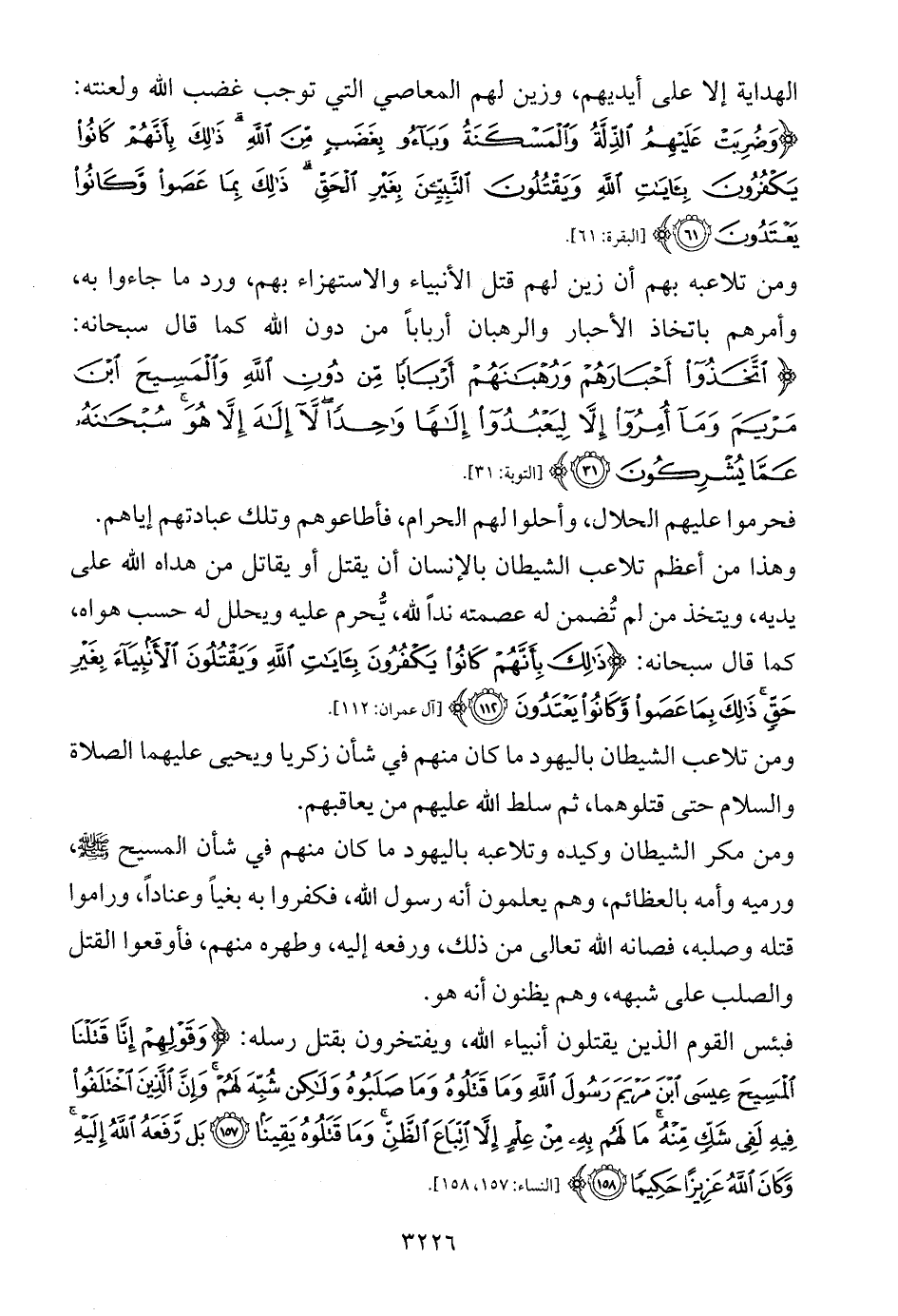 الهداية إلا على أيديهم، وزين لهم المعاصي التي توجب غضب الله ولعنته: {وَضُرِبَتْ عَلَيْهِمُ الذِّلَّةُ وَالْمَسْكَنَةُ وَبَاءُوا بِغَضَبٍ مِنَ اللَّهِ ذَلِكَ بِأَنَّهُمْ كَانُوا يَكْفُرُونَ بِآيَاتِ اللَّهِ وَيَقْتُلُونَ النَّبِيِّينَ بِغَيْرِ الْحَقِّ ذَلِكَ بِمَا عَصَوْا وَكَانُوا يَعْتَدُونَ (61)} [البقرة: 61].
