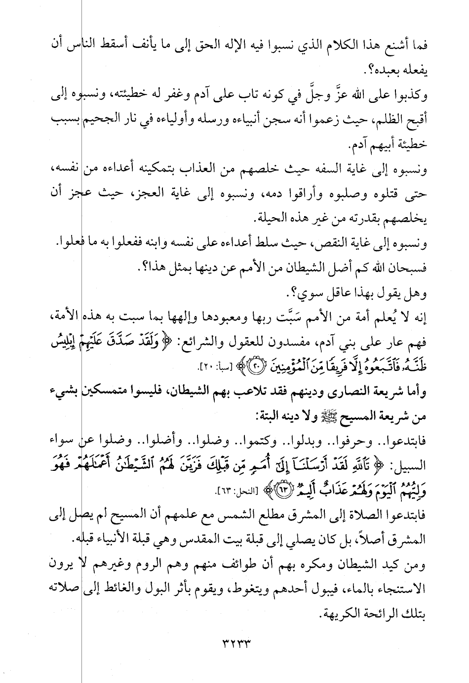وأما شريعة النصارى ودينهم فقد تلاعب بهم الشيطان، فليسوا متمسكين بشيء من شريعة المسيح - صلى الله عليه وسلم - ولا دينه البتة: