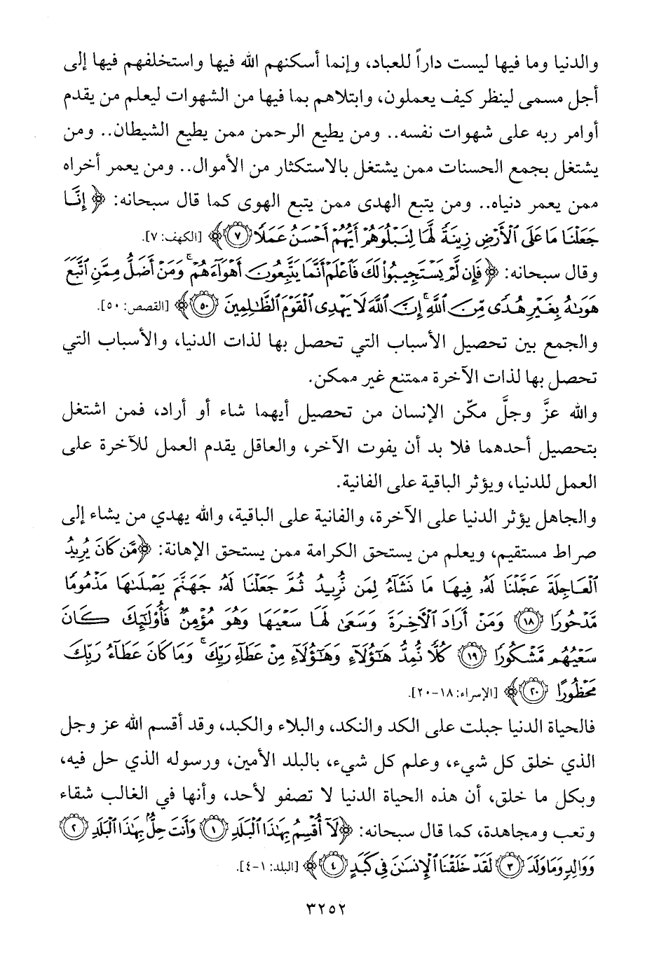 والدنيا وما فيها ليست داراً للعباد، وإنما أسكنهم الله فيها واستخلفهم فيها إلى أجل مسمى لينظر كيف يعملون، وابتلاهم بما فيها من الشهوات ليعلم من يقدم أوامر ربه على شهوات نفسه .. ومن يطيع الرحمن ممن يطيع الشيطان .. ومن يشتغل بجمع الحسنات ممن يشتغل بالاستكثار من الأموال .. ومن يعمر أخراه ممن يعمر دنياه .. ومن يتبع الهدى ممن يتبع الهوى كما قال سبحانه: {إِنَّا جَعَلْنَا مَا عَلَى الْأَرْضِ زِينَةً لَهَا لِنَبْلُوَهُمْ أَيُّهُمْ أَحْسَنُ عَمَلًا (7)} [الكهف: 7].