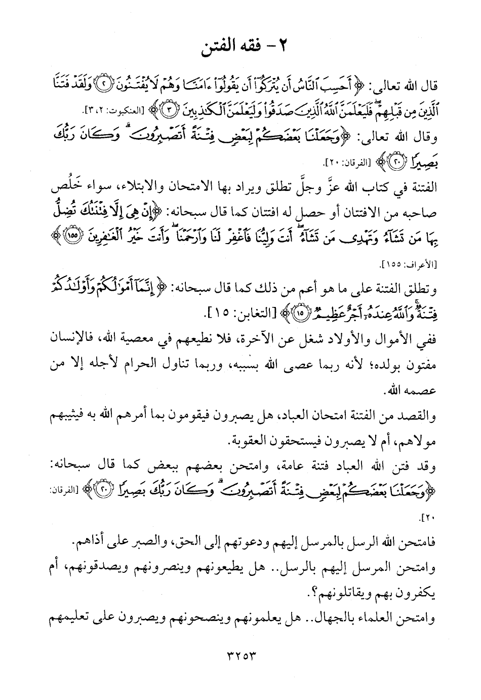الفتنة في كتاب الله عزَّ وجلَّ تطلق ويراد بها الامتحان والابتلاء، سواء خَلُص صاحبه من الافتتان أو حصل له افتتان كما قال سبحانه: {إِنْ هِيَ إِلَّا فِتْنَتُكَ تُضِلُّ بِهَا مَنْ تَشَاءُ وَتَهْدِي مَنْ تَشَاءُ أَنْتَ وَلِيُّنَا فَاغْفِرْ لَنَا وَارْحَمْنَا وَأَنْتَ خَيْرُ الْغَافِرِينَ (155)} [الأعراف: 155].