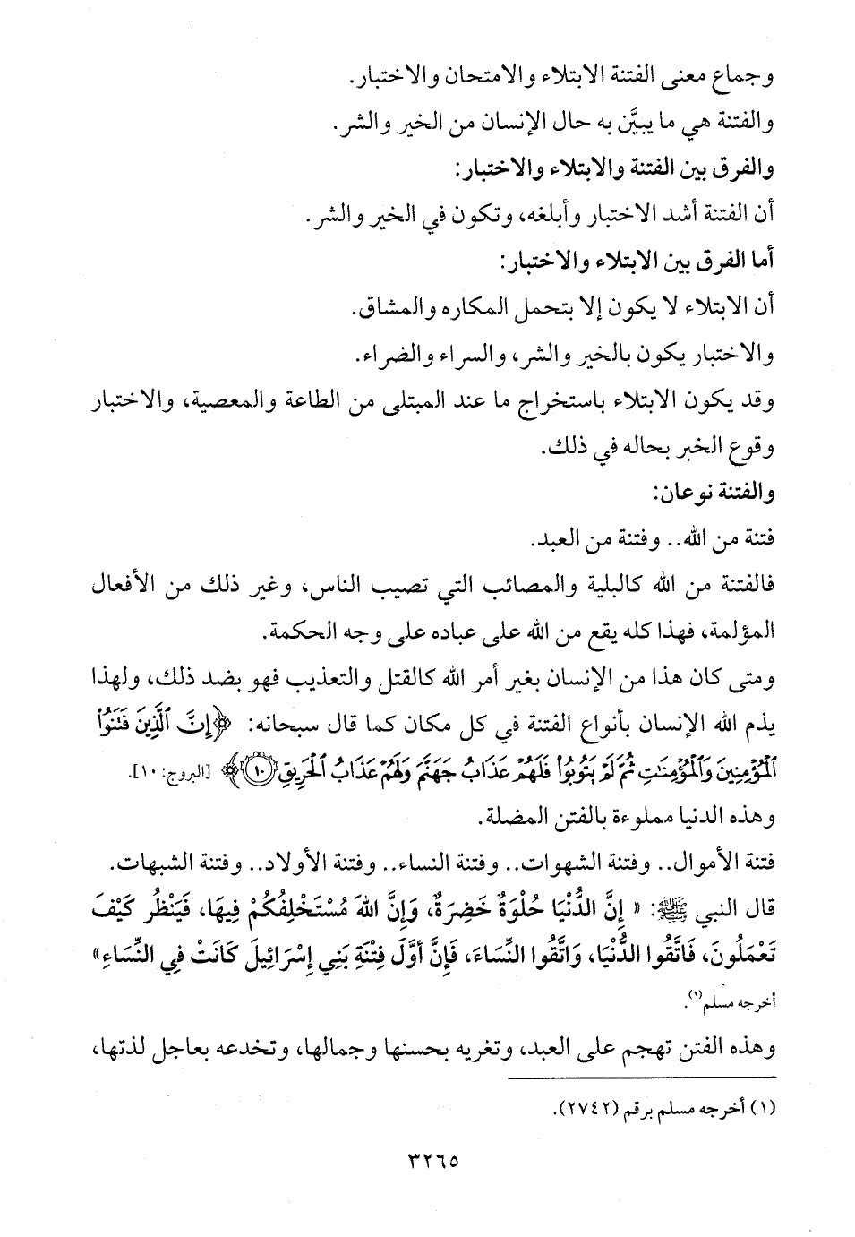 فتنة الأموال .. وفتنة الشهوات .. وفتنة النساء .. وفتنة الأولاد .. وفتنة الشبهات.