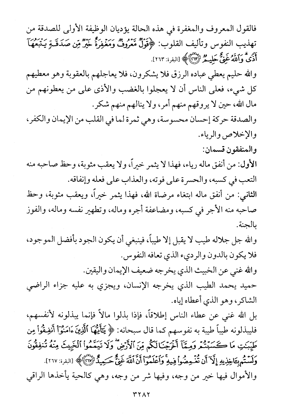 والصدقة حركة إحسان محسوسة، وهي ثمرة لما في القلب من الإيمان والكفر، والإخلاص والرياء.