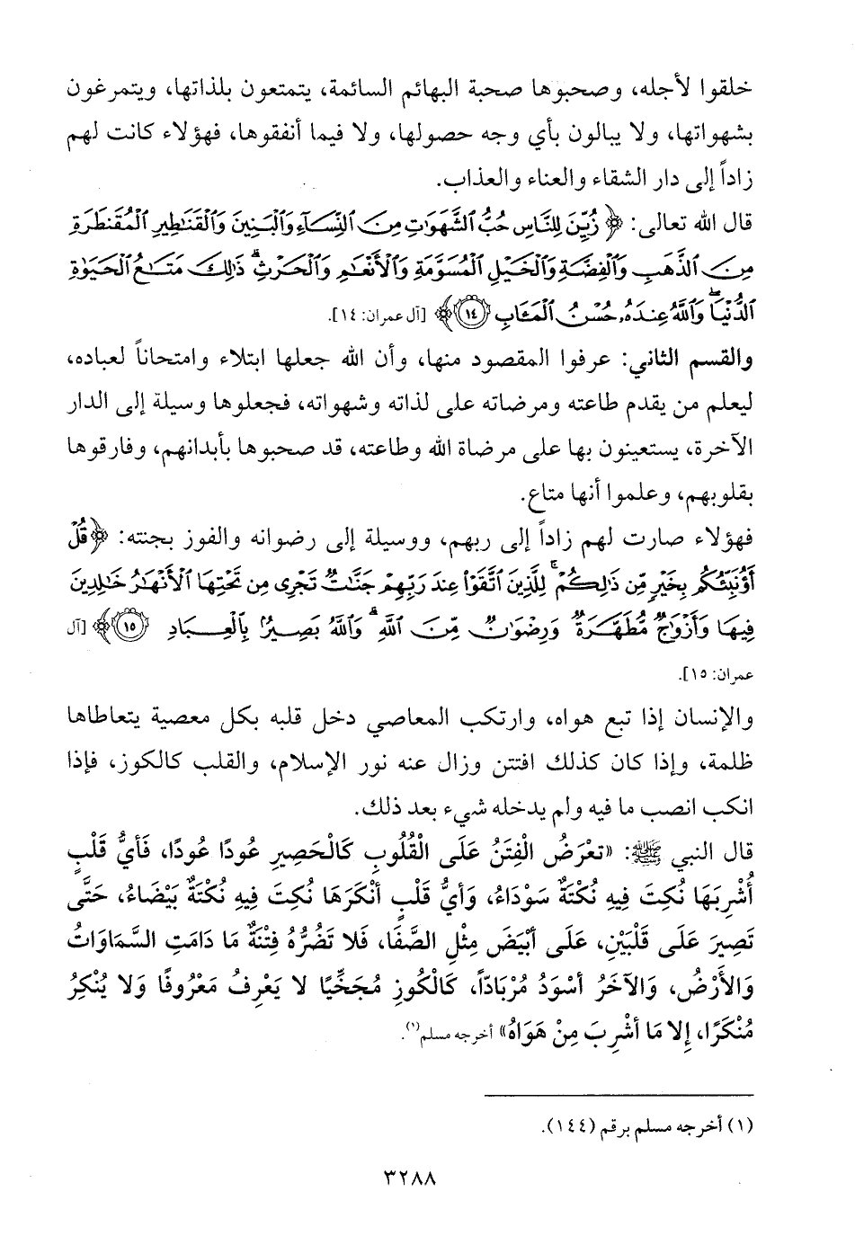 قال الله تعالى: {زُيِّنَ لِلنَّاسِ حُبُّ الشَّهَوَاتِ مِنَ النِّسَاءِ وَالْبَنِينَ وَالْقَنَاطِيرِ الْمُقَنْطَرَةِ مِنَ الذَّهَبِ وَالْفِضَّةِ وَالْخَيْلِ الْمُسَوَّمَةِ وَالْأَنْعَامِ وَالْحَرْثِ ذَلِكَ مَتَاعُ الْحَيَاةِ الدُّنْيَا وَاللَّهُ عِنْدَهُ حُسْنُ الْمَآبِ (14)} [آل عمران: 14].