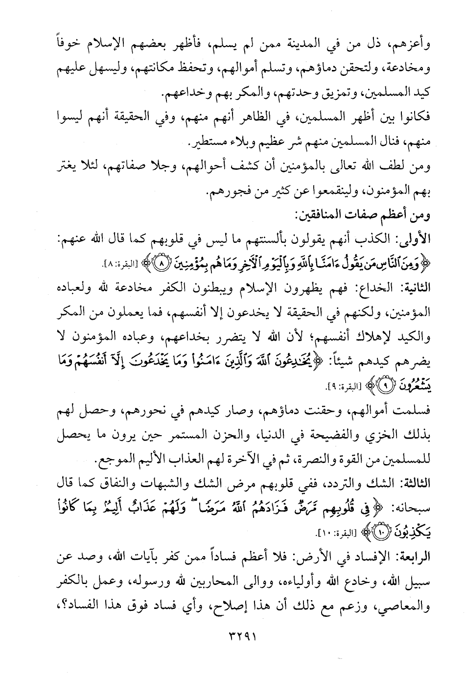 وأعزهم، ذل من في المدينة ممن لم يسلم، فأظهر بعضهم الإسلام خوفاً ومخادعة، ولتحقن دماؤهم، وتسلم أموالهم، وتحفظ مكانتهم، وليسهل عليهم كيد المسلمين، وتمزيق وحدتهم، والمكر بهم وخداعهم.