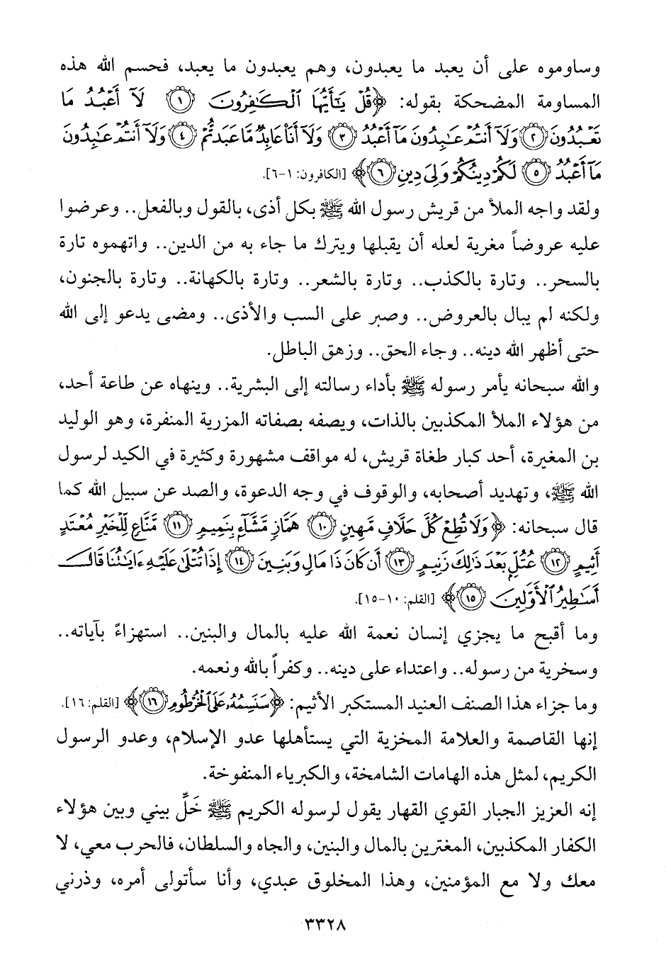 وساوموه على أن يعبد ما يعبدون، وهم يعبدون ما يعبد، فحسم الله هذه المساومة المضحكة بقوله: {قُلْ يَاأَيُّهَا الْكَافِرُونَ (1) لَا أَعْبُدُ مَا تَعْبُدُونَ (2) وَلَا أَنْتُمْ عَابِدُونَ مَا أَعْبُدُ (3) وَلَا أَنَا عَابِدٌ مَا عَبَدْتُمْ (4) وَلَا أَنْتُمْ عَابِدُونَ مَا أَعْبُدُ (5) لَكُمْ دِينُكُمْ وَلِيَ دِينِ (6)} [الكافرون: 1 - 6].