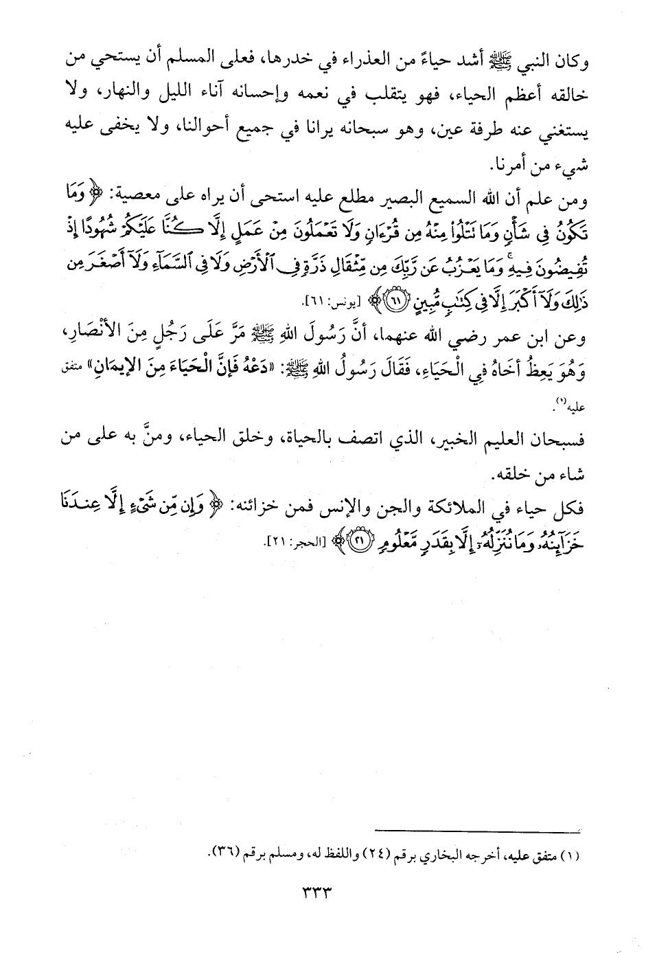 فسبحان العليم الخبير، الذي اتصف بالحياة، وخلق الحياء، ومنَّ به على من شاء من خلقه.